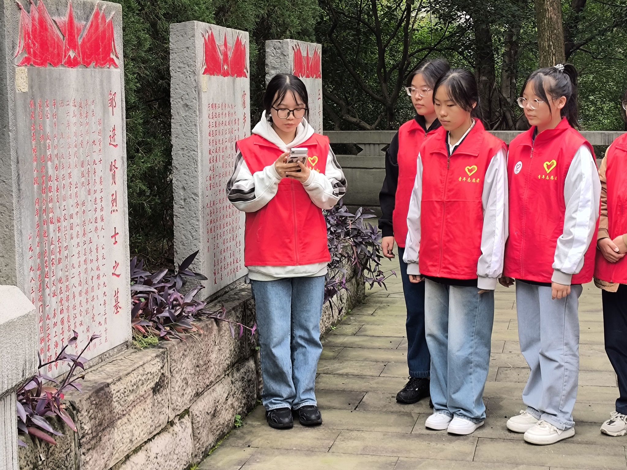 同学们在志愿者的带领下,参观烈士陵园,通过听烈士故事了解烈士生前抛头颅、洒热血、追求革命理想的伟大壮举。尤其是勿忘民族恨,常思家国仇,贼心仍未死,邪念几时休?生于和平世,时刻守家园,聆听了先烈的事迹之后,更激励了同学们努力学习、奋发向上,为中华民族伟大复兴而奋斗。
