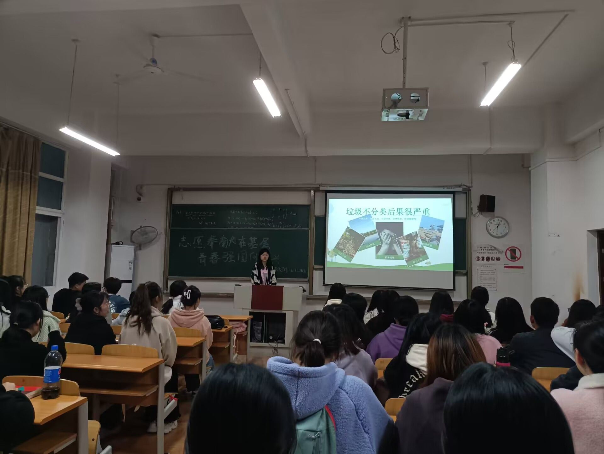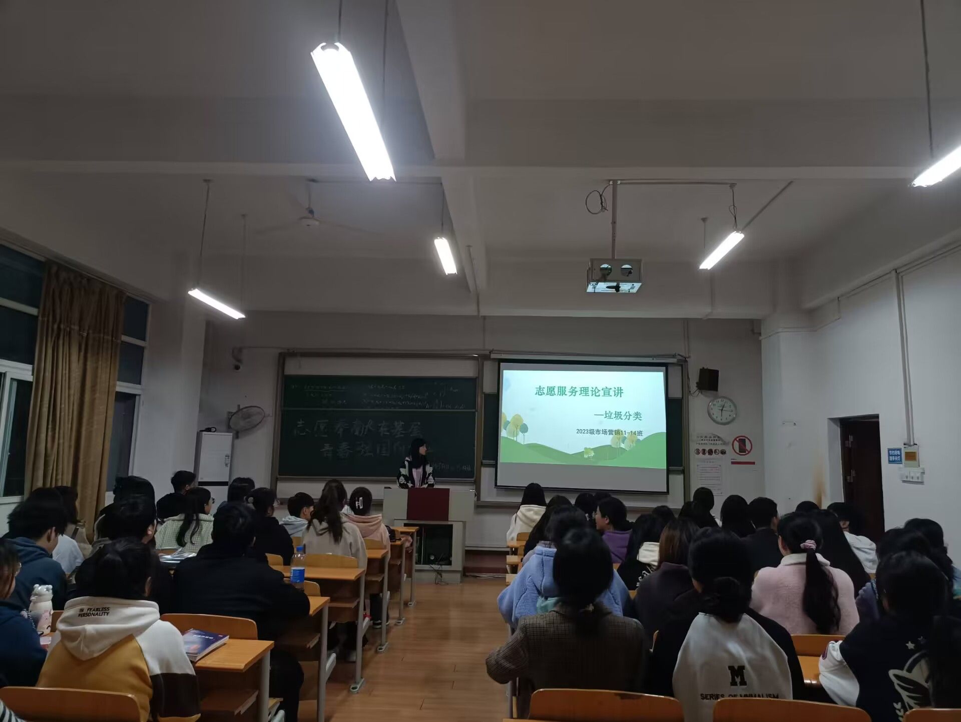 地球是人类的家园,保护环境就是保护人类自己。为营造良好的校园环境,提高大学生对垃圾分类的认识和理解,引导公众养成垃圾分类的好习惯,增强大学生的环保意识和责任感,促进可持续发展,同时提高大学生的社会实践能力和综合素质,重庆移通学院淬炼商学院青年志愿者协会携2023级市场营销专升本11-14班于2023年11月25号晚六点在7205进行了关于垃圾分类的志愿服务理论宣讲活动。