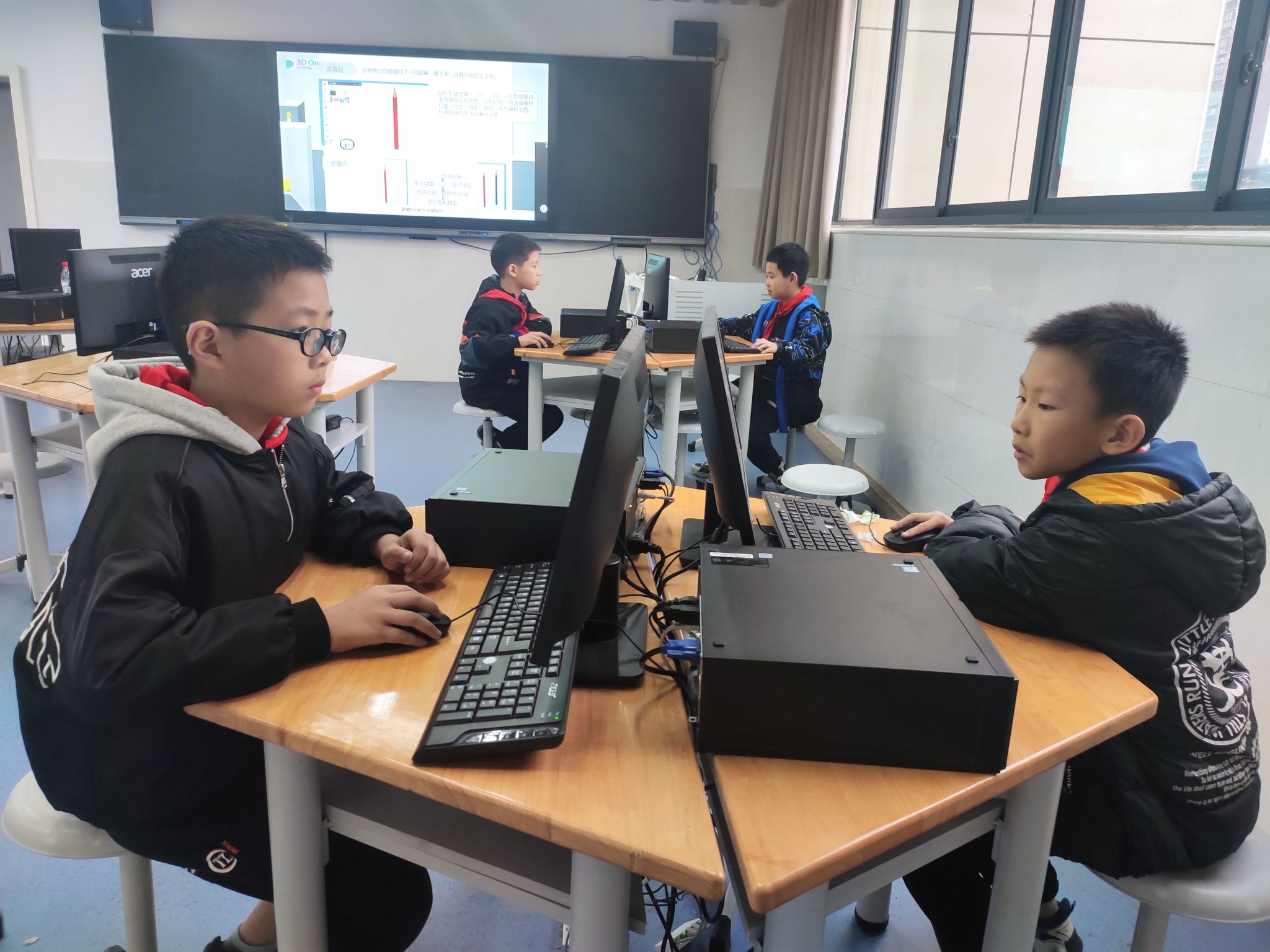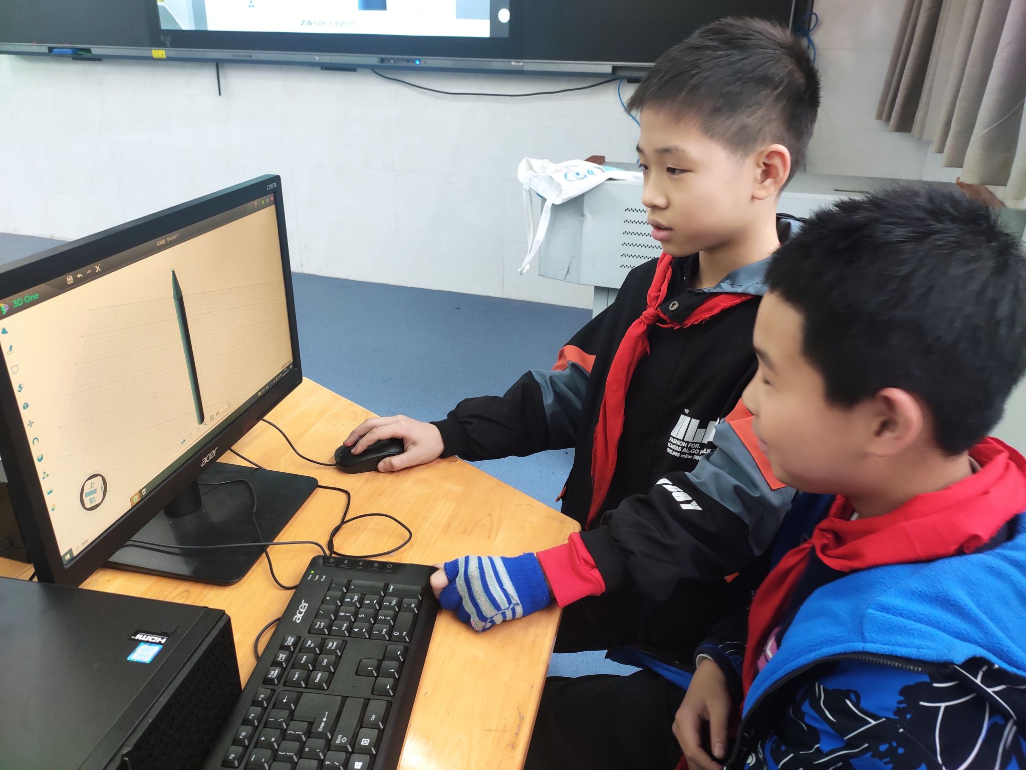 本次在中南小学中,老师为同学们讲解如何使用3DONE进行多彩铅笔的制作。在课程中,老师先给同学们介绍了铅笔的构成,同学们都细心的听老师的讲解,跟随老师的讲解一步一步的进行3D模型的绘制。同学们按照老师的讲解,一步一步的把多彩铅笔绘制完毕。到了最后,大家都踊跃参与,积极的向老师展示自己做出来的3D模型,先做完的小朋友也都自发的去帮助周围其他没有成功的小朋友,课堂氛围十分活跃。