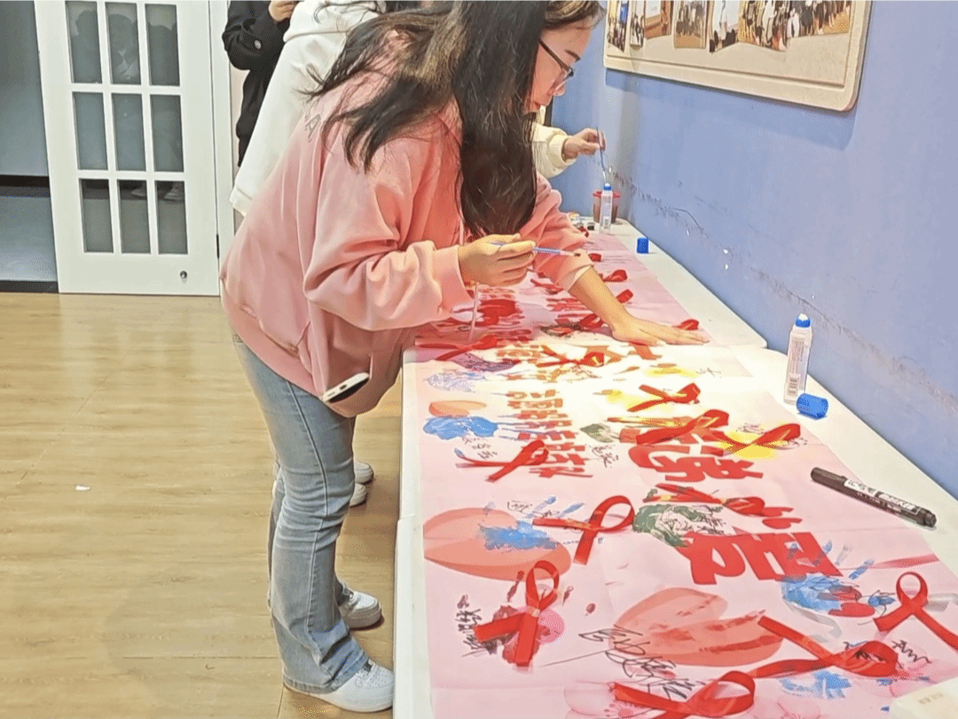 活动通过PPT解说、抽卡提问、制作红丝带和横幅签名展示等多种形式开展了艾滋病科普知识宣传。