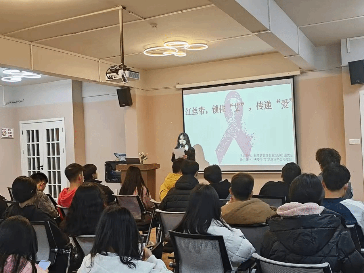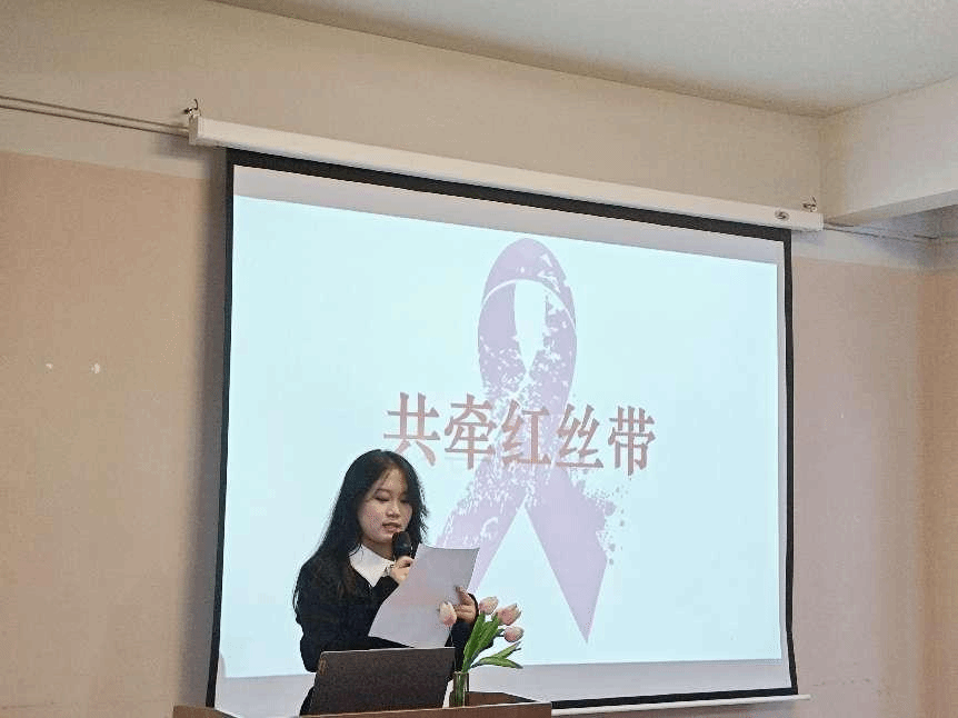 第36个“世界艾滋病日”即将到来,为提前让同学们了解艾滋知识,同时进一步推动艾滋病防治工作,营造全民参与艾滋病防治的良好氛围。2023年11月24日,数字经济与信息管理学院2023级供应链管理1班团支部与天使关“艾”志愿服务专项支队在綦河书院三号楼小石潭·多功能活动室合作展开了“红丝带,锁住‘艾’,传递爱”的主题宣讲活动。