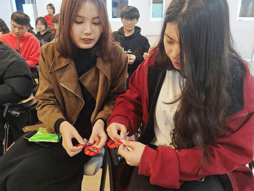 红丝带象征着对生命的尊重和对健康的关注,同时红丝带也是此次活动的重要标志。在活动现场,同学们积极参与,认真学习制作技巧,用自己的双手制作出了一件件精美的红丝带作品。这些作品不仅展示了同学们的巧手和创造力,表达了他们对健康生活的追求和向往。还锻炼了同学们的动手能力,传递出了健康生活的理念,提醒着同学们关注身体健康,珍爱生命。