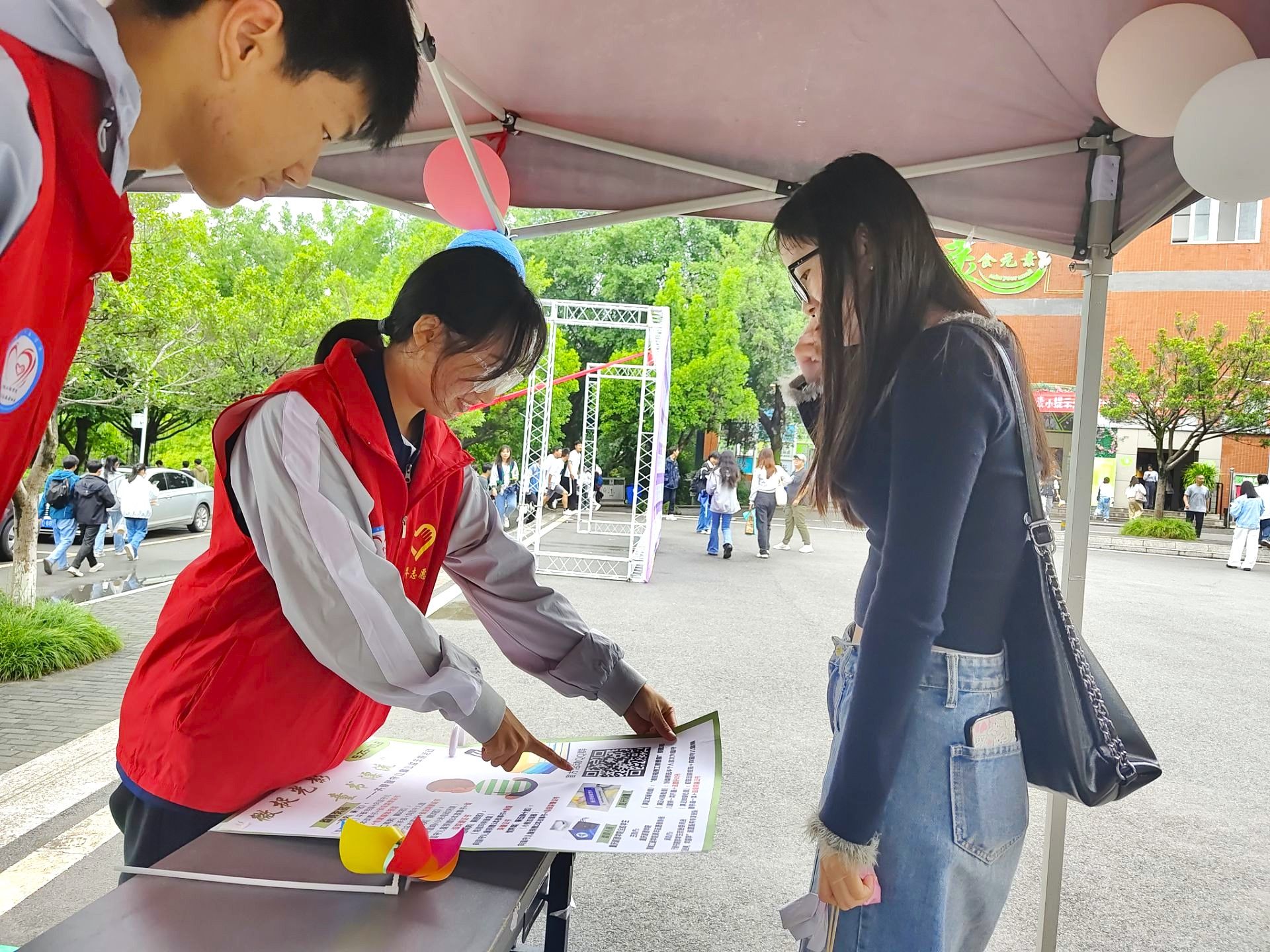 除了线上宣传,本次活动还采取线下宣传的方式,在C食堂以及AB食堂外小广场分别设点,为活动做好宣传工作的同时更好地为参赛同学答疑解惑,让更多的人了解并且参与到关爱留守儿童的志愿活动中。参与环节到10月11日截止,紧接着就是评选环节,工作人员从参赛作品中选择点赞数高的前284名,经过汇总得出最终获奖人员名单,并于2023年10月27日下午14:00在爱莲书院多功能影音室举行颁奖仪式。