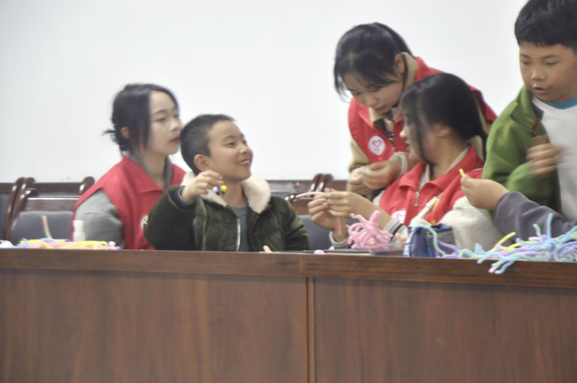 课余时间的陪伴,在孩子们的世界里尤为重要。志愿者们带去扭扭棒,与孩子们一同做手工。志愿者与孩子们共同做出了各种各样的美好的作品,例如花朵,戒指,项链,金箍棒等。孩子们开发了自己的动手能力,志愿者也在这个过程当中找回自己的童心。在寒冷的冬天,孩子与志愿者互相温暖,情意热烈似火。