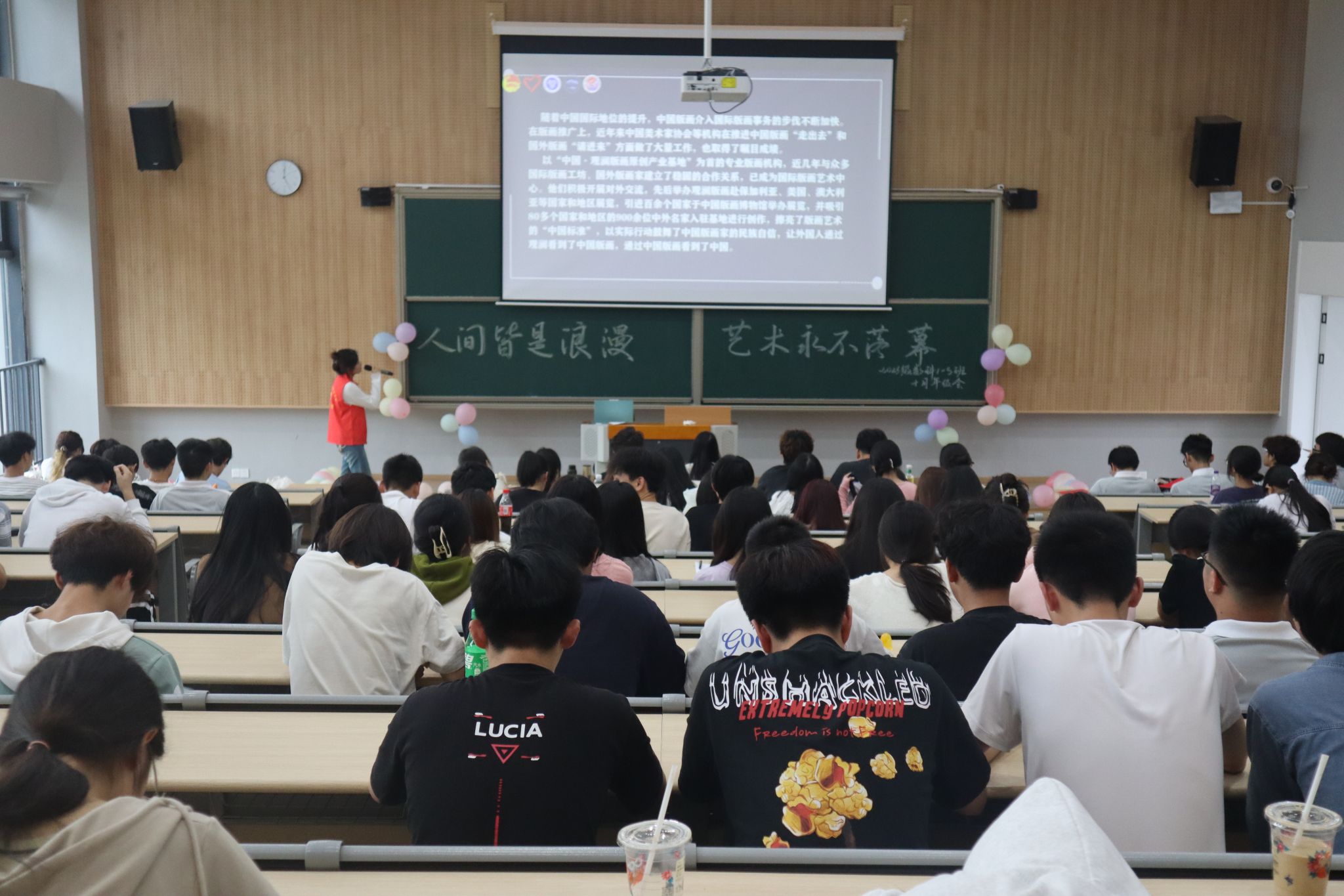 木刻版画是刻刀与木头碰撞的艺术,它们走过悠久的历史,与现代生活接轨,焕发出新的生机与活力。为成为版画文化的青年宣讲者,将版画文化中蕴含的民俗精神传播给更多青年学子,10月18日17:00,大数据学院青年志愿者协会联合2023级数据科学与大数据技术1-5班同学在横山书院阶梯教室开展了一场意义非凡的版画宣讲活动。此次版画宣讲活动不仅让同学们了解了版画,感受到了版画美学的力量,更是呼吁了青年学子们一起传承时光深处走来的非遗。