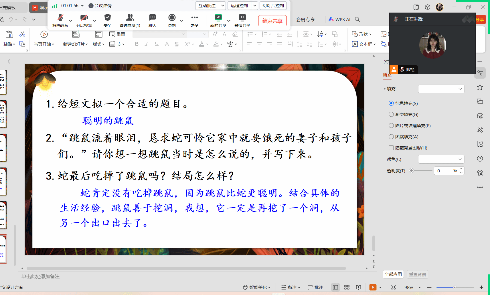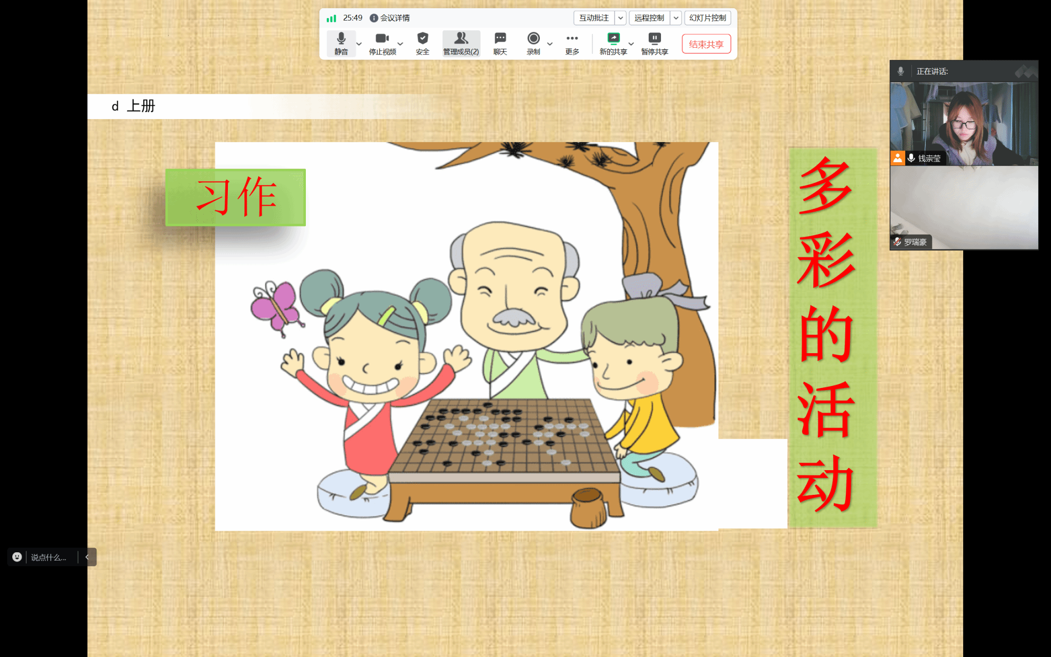 通过线上课程,给我受益匪浅。首先,线上课堂锻炼了我的语言表达能力以及熟练的运用办公室自动化技术。在此过程中,我发现了小朋友们的可爱之处,他们认真听讲,全程积极配合志愿者们的工作。在课堂上,小朋友们收获了知识,同时在课堂之外,他们收获了友谊。