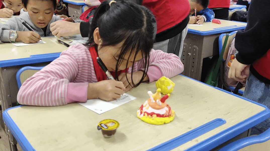 到达目的地后,志愿者首先为小朋友们介绍游戏规则,将小朋友分为了五个小组,由各组志愿者带领着完成游戏。第一个游戏是用橡皮泥捏出给定的主题。在给出“蛋糕”这个主题后,小朋友们便纷纷发挥出天马行空的想象力,彩色的橡皮泥在他们的手下,变成各式各样的小部件,最终拼凑在一起,成为独具特色的“蛋糕”。各具特色的作品是孩童们内心童趣的映射。