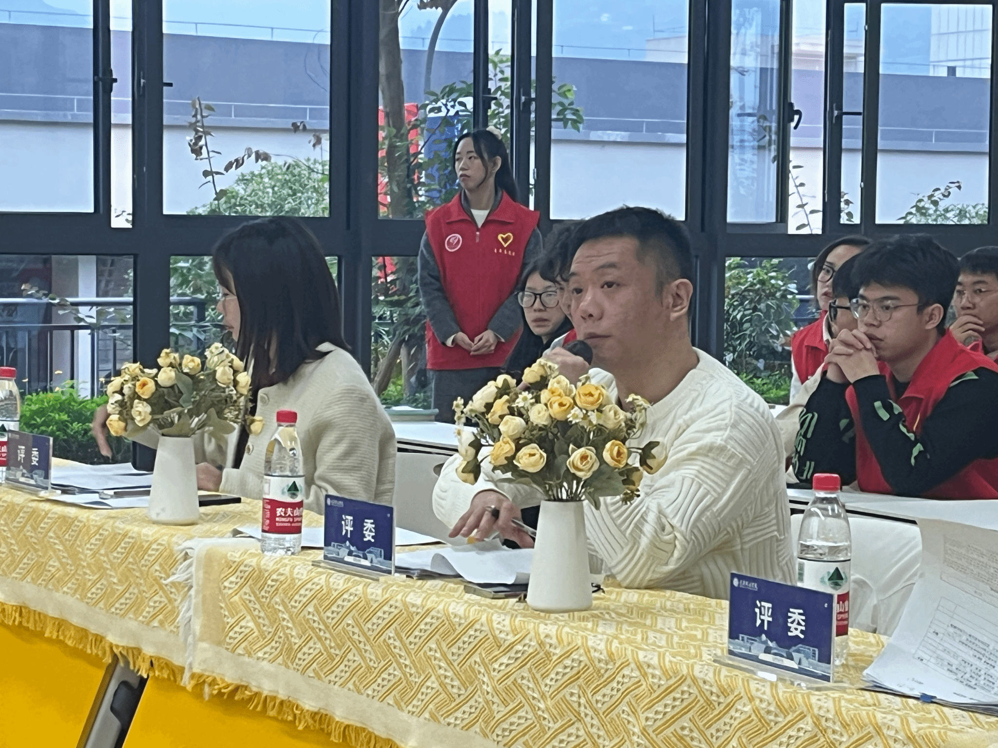 在比赛过程中,每个团队依次进行项目答辩与压力竞答环节,选手们认真进取,答辩声音清晰洪亮,各个参赛团团队从项目背景、目标、实施计划、创新点等方面进行了详细阐述,充分展示了各自项目的特色和优势。同时老师们从项目的可行性、创新性等方面进行了提问和点评,其中胡戈立老师提出重要见解:“志愿服务不单单只是服务他人,更好的是服务自己的内心,要将志愿服务项目做大做强,寻找项目新亮点,挖掘其中志愿服务的含义”。