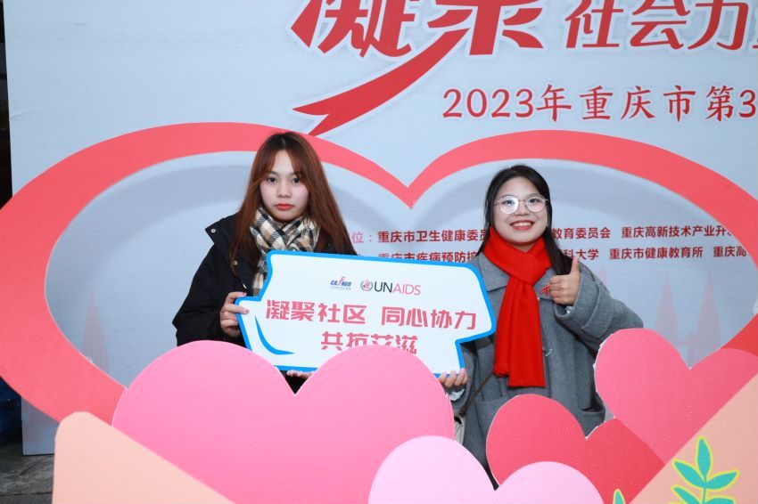 凝聚社会力量,合力共抗艾滋。2023年12月1日是世界第36个“世界艾滋病日”,为进一步做好宣传和普及艾滋病知识,营造良好社会防艾氛围。2023年11月30日重庆移通学院綦江校区大数据学院天使关“艾”志愿服务专项支队作为防艾社会组织受邀前往承办单位之一——重庆医科大学,参与重庆市2023年“世界艾滋病”日主题宣传活动。