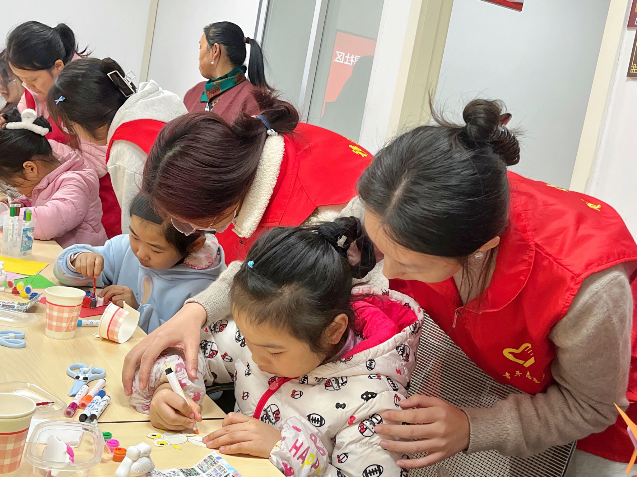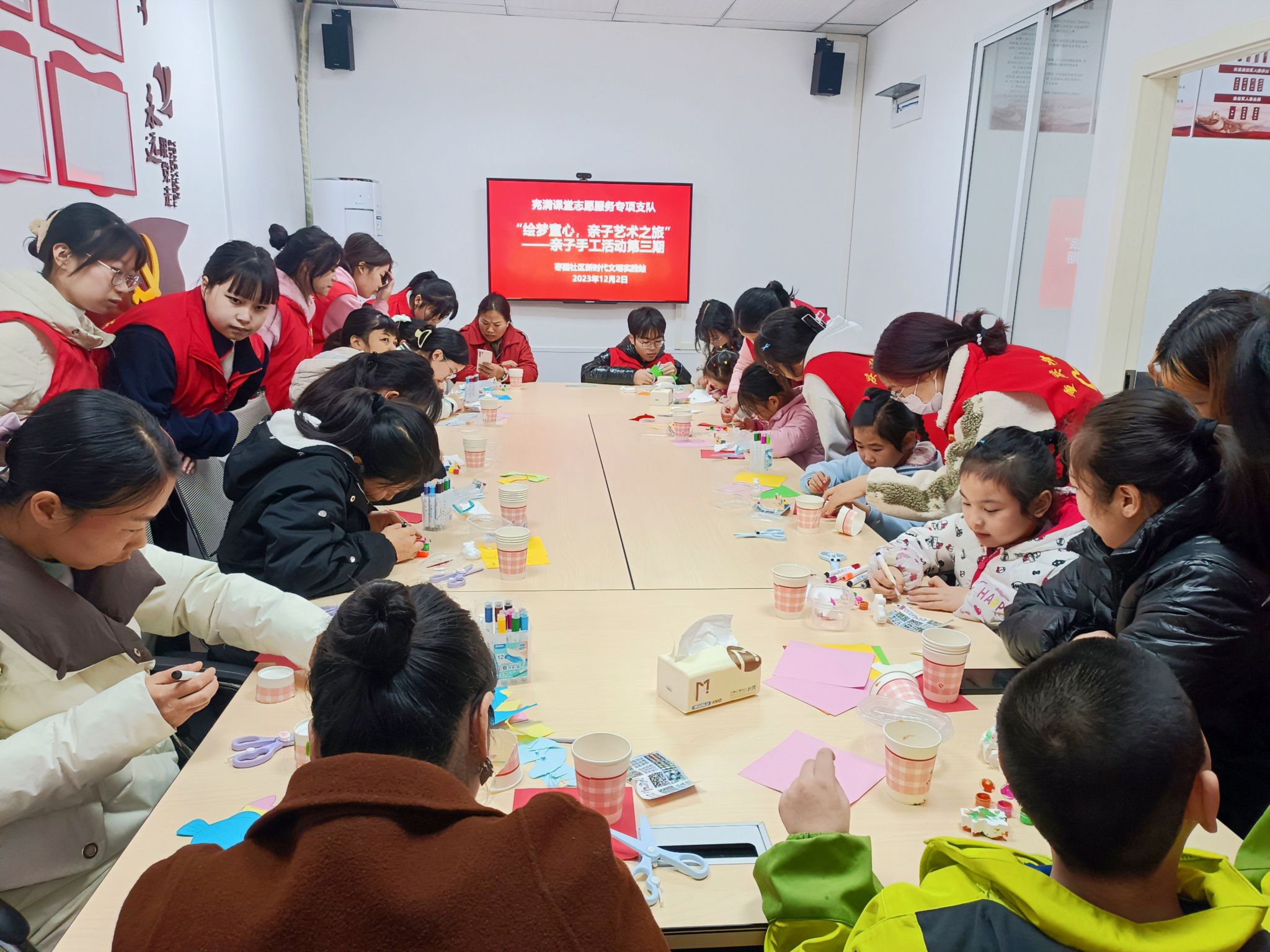 亲子手工活动是一种旨在促进亲子关系和家庭互动的活动形式。通过参与手工制作,家长和孩子可以共同享受创造的乐趣,增进彼此之间的情感交流,同时培养孩子的动手能力和创造力。在这个快节奏的社会中,亲子手工活动为家庭提供了一个放松、愉快的时刻,让家庭成员更加亲近。此外,本次志愿服务活动不仅培养了小朋友们的动手能力和创造力,也号召着每一位志愿者们,以温暖和爱关怀社会,将志愿服务根植于传统文化,让优秀文化不再蒙尘,展露风姿。