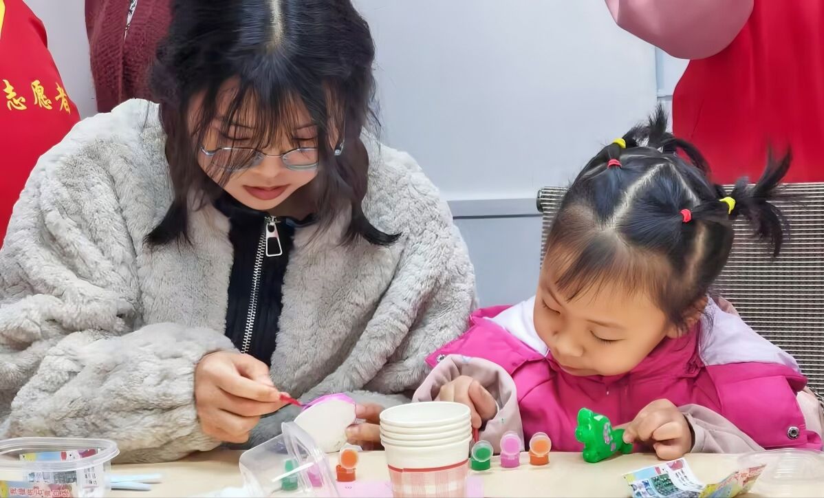 为了促进亲子关系,培养孩子的动手能力,激发孩子的创造力,增强孩子的自信心,2023年12月2日的上午,完满课堂志愿服务专项支队的志愿者们前往枣园社区,开展了“绘梦童心·亲子艺术之旅”的手工亲子活动。此次活动目的是让孩子们和父母一起通过涂石膏娃娃,制作风铃增进彼此之间的情感交流。