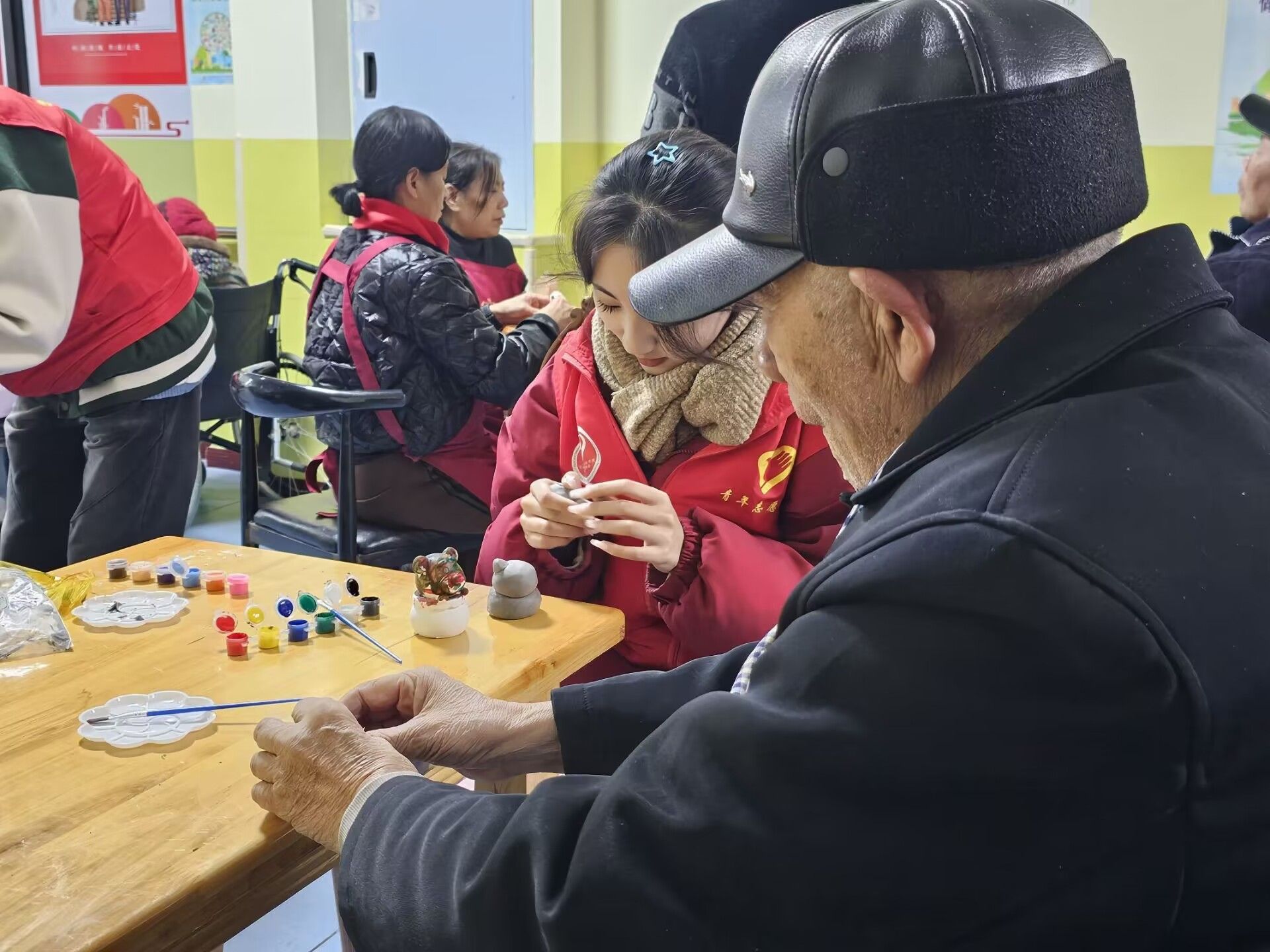 活动伊始,志愿者们早早来到千家福养老院与相关负责人对接,进行前期准备工作。而后便正式开展活动,志愿者们拿出提前准备好的石膏娃娃与老人一起“绘出”这段美好的时光。老人们展现出了惊人的创造力,有的给娃娃穿上了五彩斑斓的衣裳,有的则画上了生动活泼的图案。他们用画笔和颜料将石膏娃娃变成了一件件艺术品。