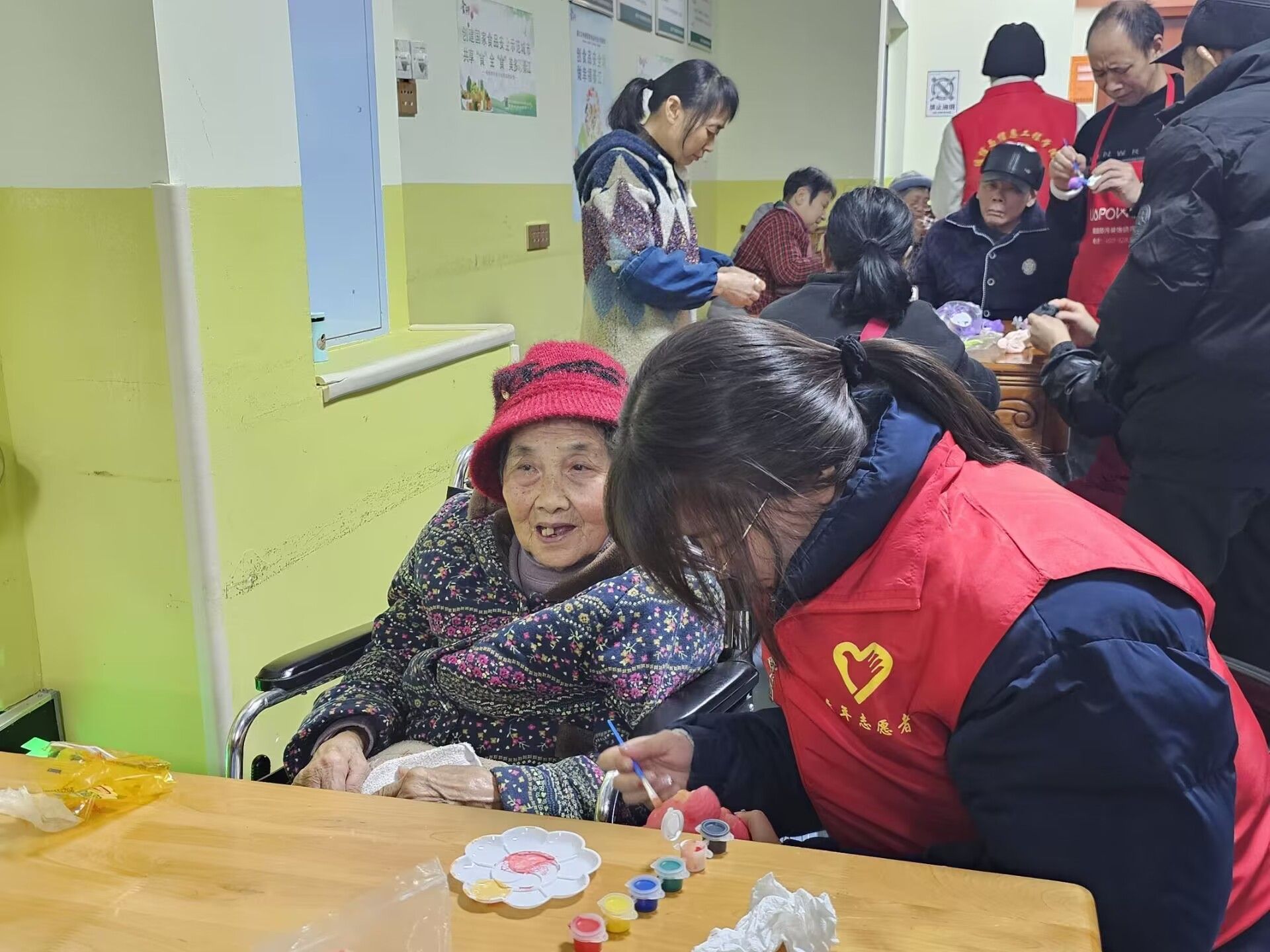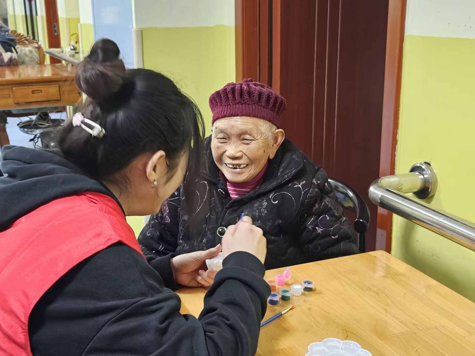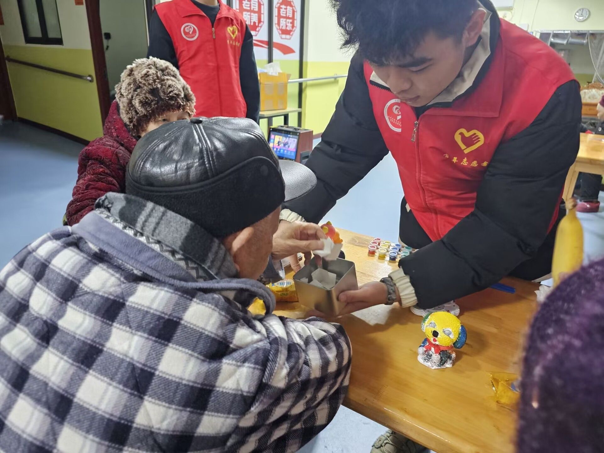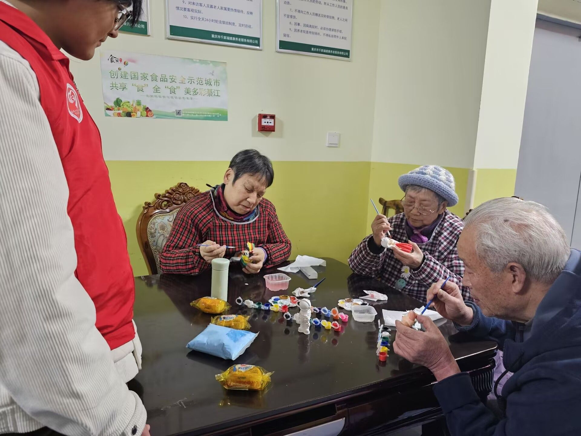 随着社会的发展和人口老龄化的加剧、当代社会工作的巨大压力,许多子女迫不得已将老人们送至养老院照看。这些空巢老人们需要更多的关注和陪伴,以满足精神上的需求。2023年12月15日星期五,重庆移通学院的一群志愿者们来到当地的社区活动中心千家福养老服务公司,这次志愿者活动的主要内容是为当地的养老院老人提供陪伴和关怀。志愿者们与老人们一起进行了各种有趣的活动,包括给石膏娃娃涂色、用粘土塑形、盲盒抽取等。这些活动不仅让老人们感受到了快乐和温暖,也让志愿者们体会到了服务他人的意义和价值,与养老院的老人一起度过了一个充满欢乐和温馨的下午。