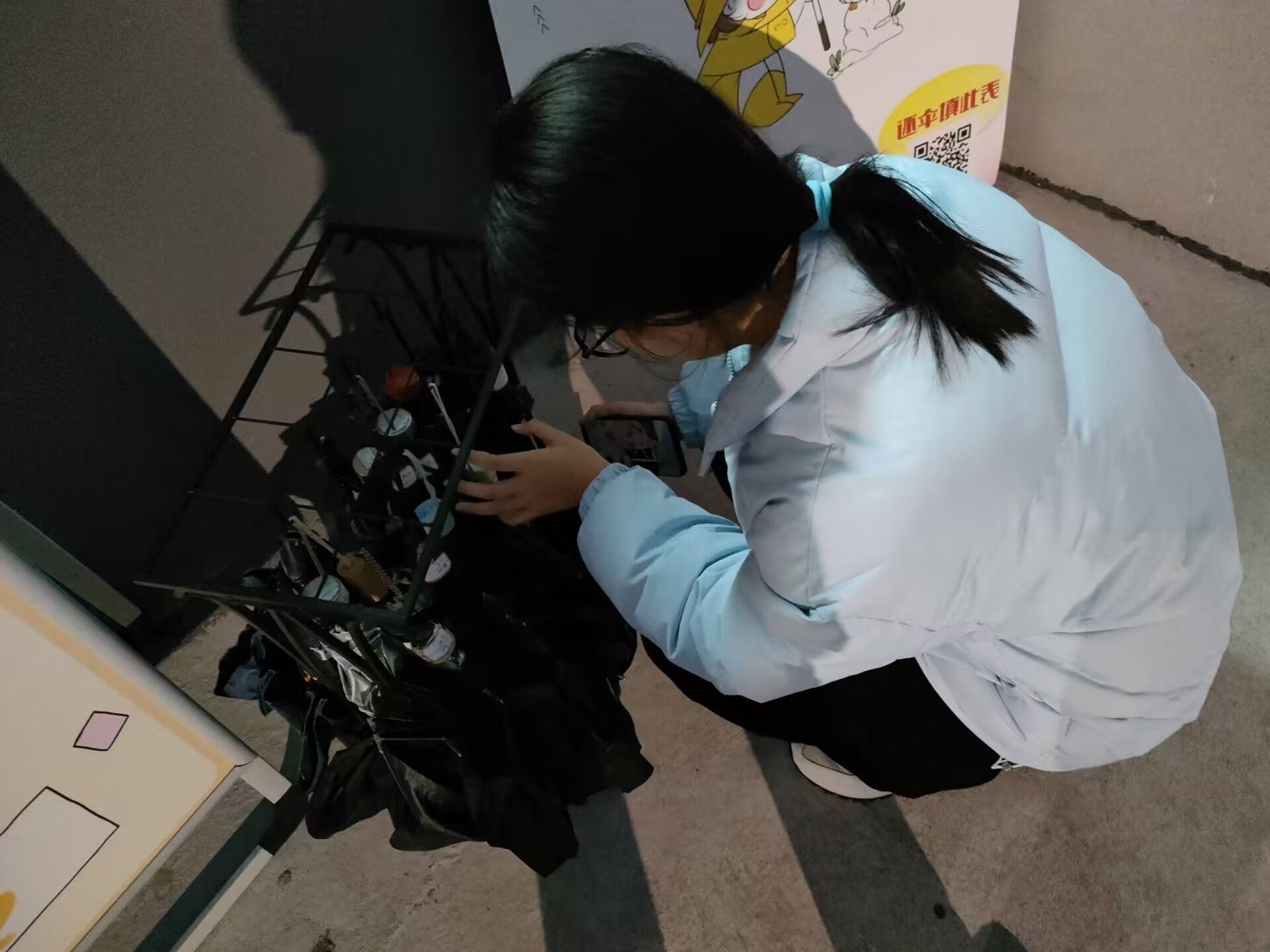 在活动策划之初,队员们对失物招领处的雨伞进行了系统的清点,并将长期无人认领的雨伞作为本次活动的主要物资。分配任务、划分区域、规划时间、召集人员……这些无疑是工作人员必须要做的准备工作,以此来保证此次共享雨伞爱心活动的顺利进行。每一位工作人员都穿上写有“青年志愿者”的红色马甲后,便及时将清点好的物资分头搬运到事先划分好的区域,同时将借伞公约摆放在清晰可见的位置,方便同学们读取信息,遵守相应条例,传递爱心之举。
