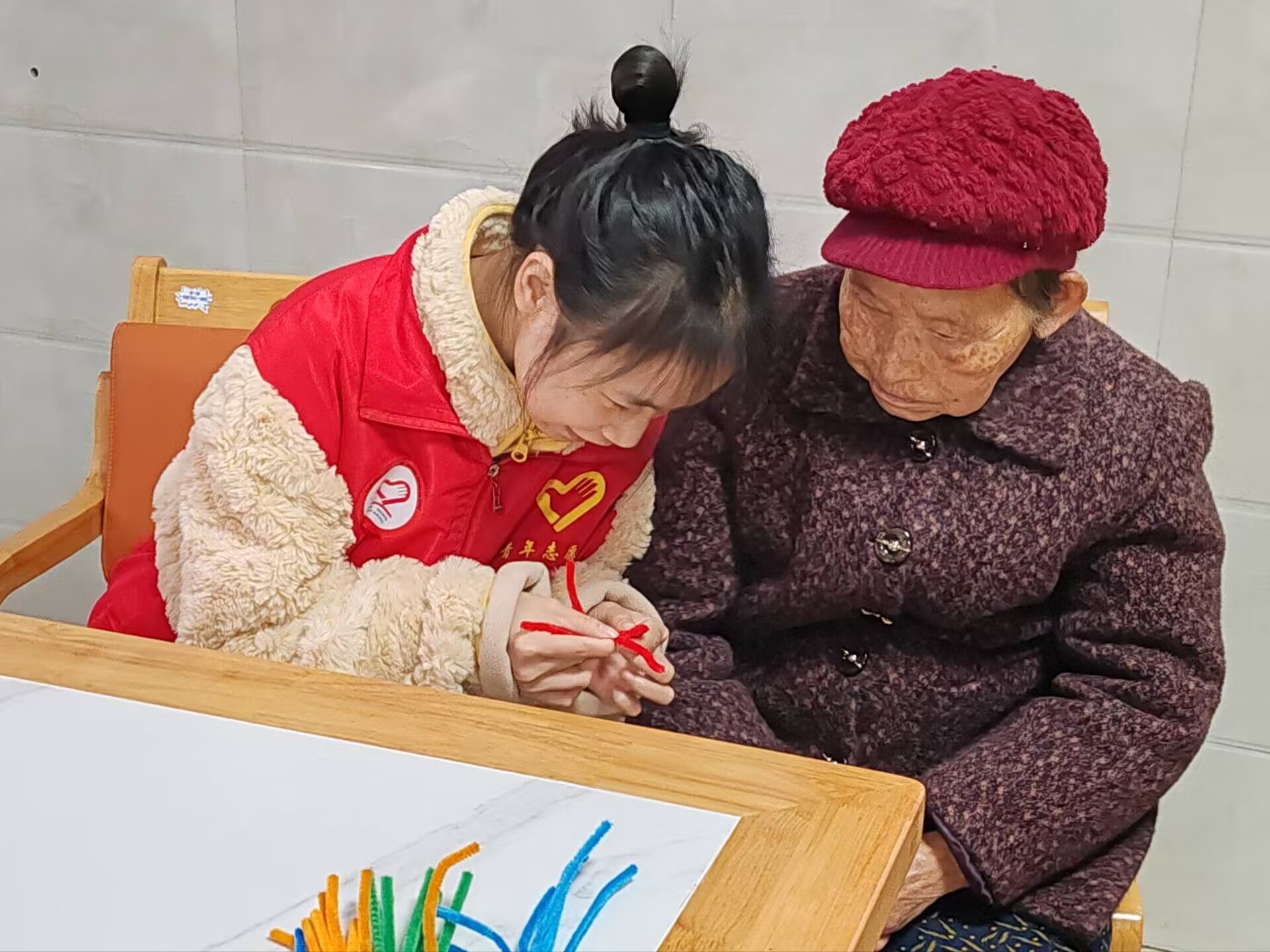 随着社会的发展,老龄化问题日益严重,老年人的生活和健康问题备受关注。为让老年人们安享晚年,感受到家庭般的温馨。2023年12月16日,一支充满爱心的志愿队伍一一“温馨”关爱孤寡老人志愿服务专项支队,走进重庆合川区康乐养老公寓,为这里的孤寡老人带去关爱与温暖。志愿者们不仅帮助老人打扫卫生、进行劳动,还用扭扭棒制作色彩斑斓的花朵,为老人们枯燥乏味的生活增添了无限色彩。