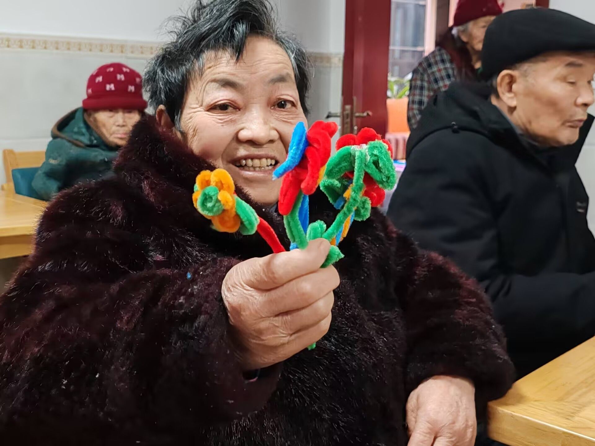 此外,志愿者们还举办了一场“巧手编织,美丽呈现”手工活动。旨在通过手工制作,提高老人们的思维能力和动手能力,同时也为爷爷奶奶们的生活增添了更多的色彩。志愿者首先向老人们介绍了扭扭棒的使用方法和制作花朵的步骤。然后,每个老人都得到了扭扭棒和一些辅助工具,他们可以根据自己的喜好和创意,制作出各种各样的花朵。在制作过程中,老人们的脸上洋溢着快乐的笑容。老人们用心地选择颜色,认真地组合扭扭棒,每一个步骤都充满了乐趣。