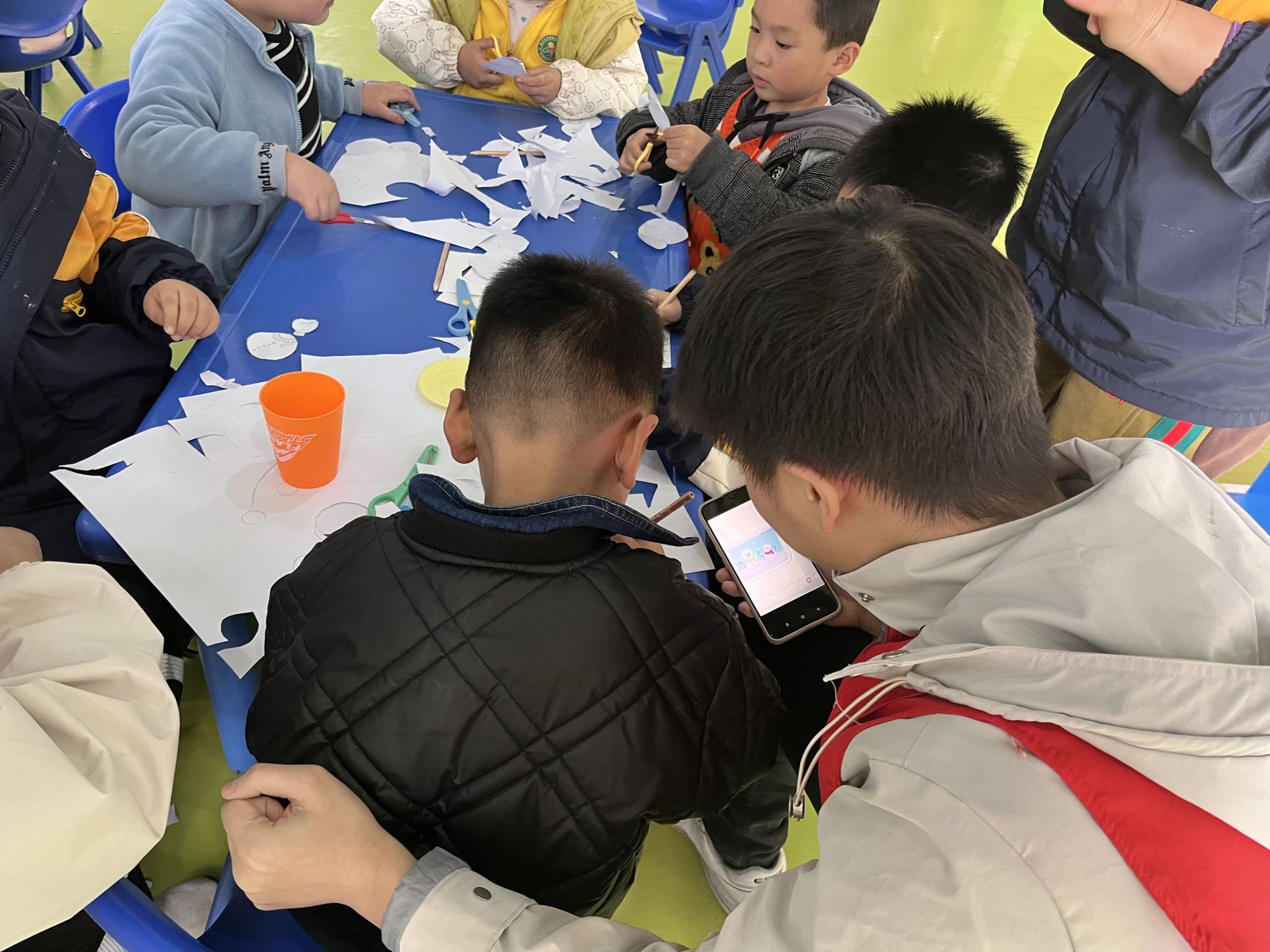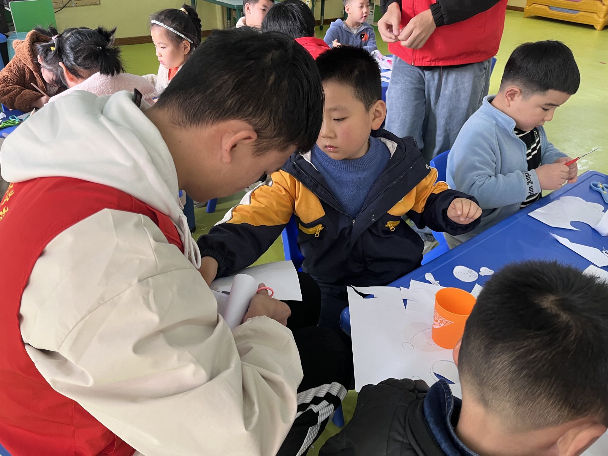 在ppt讲解完之后,志愿者便开始向孩子们介绍剪纸艺术的基本知识和技巧,然后引导他们观察和想象雪人的形态。接着,孩子们在老师和志愿者的帮助下,选择了合适的纸张和剪刀,开始剪纸创作。虽然这些小朋友们年纪小小,但他们的剪纸技能却令人惊叹。孩子们用剪刀巧妙地剪出了雪人的身体、头部、眼睛、鼻子和嘴巴,甚至还剪出了雪花装饰。每一个雪人都充满了孩子们的创意和热情。