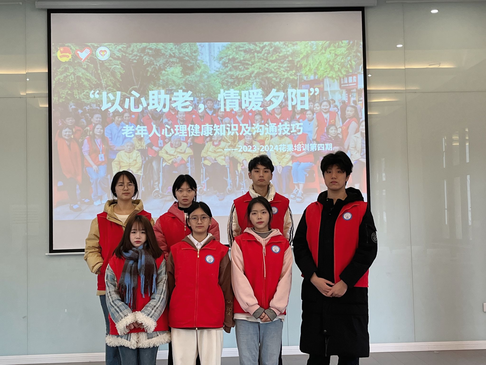 随着社会的进步和老龄化进程的加速,对老年人关怀的重要性日益凸显。为了了解老年人的心理和学习同老年人沟通的技巧,2023年12月22日下午14时,数字经济与信息管理学院青年志愿者协会于观云书院冬至多媒体教室开展了“以心助老,情暖夕阳”花果培训第四期。