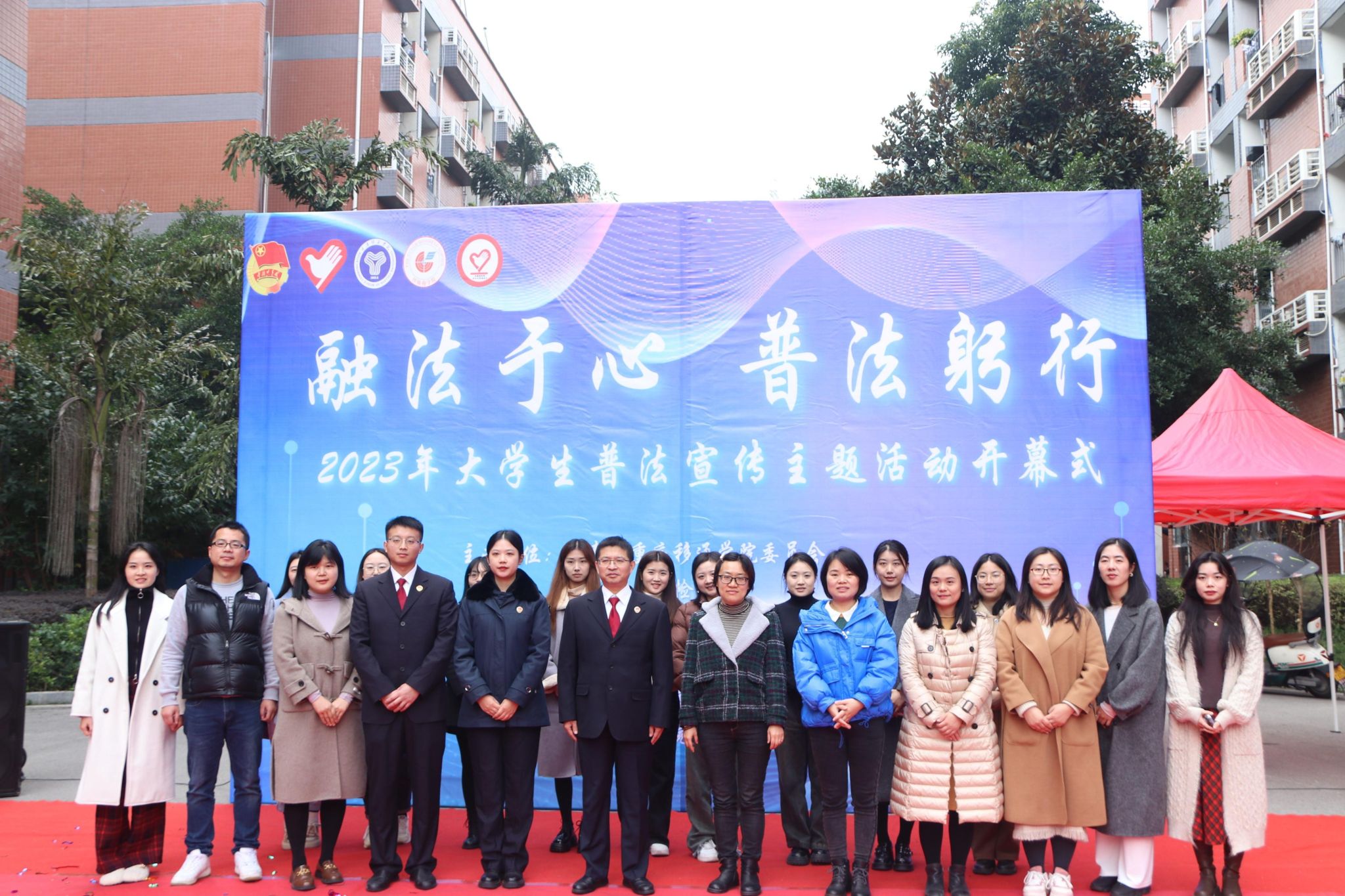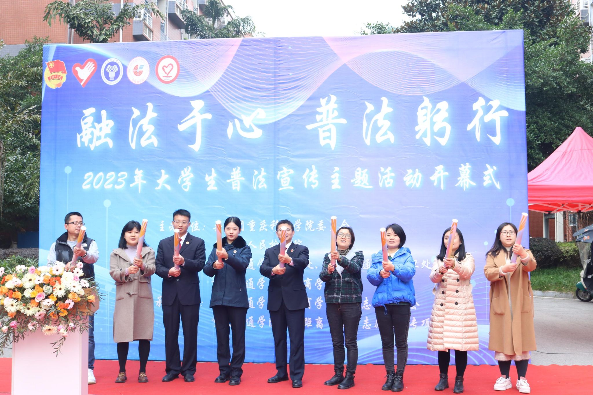 为更好地贯彻落实党的二十大精神,学习宣传法律法规,营造良好的法治校园文化环境,引导移通学子树立正确的人生观、世界观和价值观。淬炼商学院青年志愿者协会于2023年12月4日在别都广场开展了“融法于心,普法躬行”开幕式暨普法集市活动。莅临本次活动嘉宾有重庆市合川区检察院主任范小华、检察官助理陈海龙、夏露,重庆移通学院校团委书记谢银平、重庆移通学院淬炼商学院副院长曾璐、刘薇唯,重庆移通学院青年志愿者联合会主任刘月、重庆移通学院青年志愿者联合会指导老师汪小丁、徐一丹以及校院两级各个板块的指导老师。