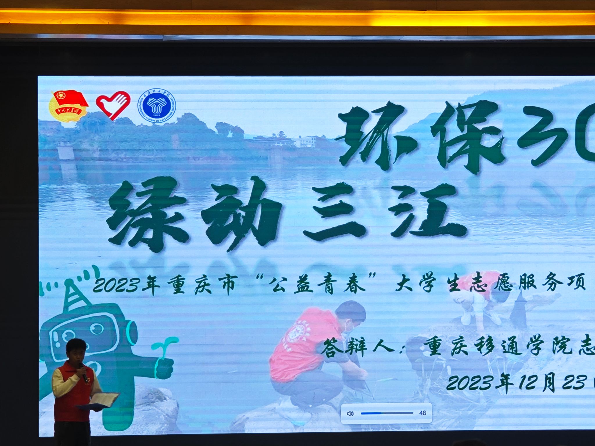 重庆市“公益青春”大学生志愿服务项目大赛自6月启动以来,引起全市各高校青年志愿服务组织、广大青年大学生志愿者广泛关注。我校通信与信息工程学院青年志愿者协会以环境保护志愿服务类别,申报“环保3C,绿动三江”志愿服务项目,并于11月通过考察评估成功突围,进入最终答辩环节。决赛现场项目成员以“路演+答辩”的形式,围绕“服务目标、服务内容、实施方法、服务效果”等维度,进行了项目讲解。