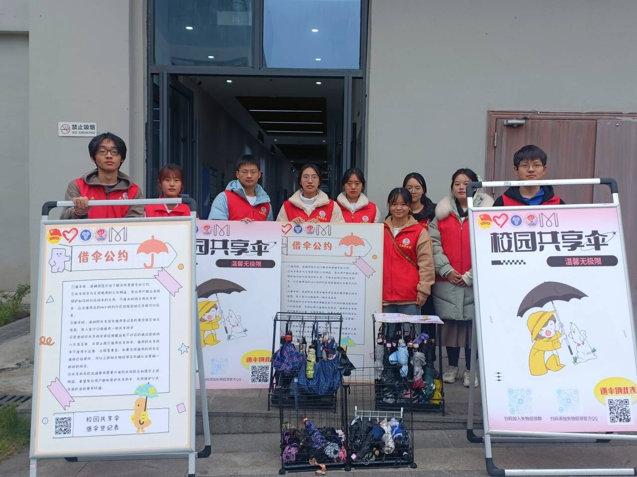 重庆特殊的地理位置和独特的气候条件,让它素有山城和雾都之称。也正是因为山地众多,气候湿润,使得这里雨天来去匆匆,总是会打的同学们措手不及。为了能减少同学们雨天出行忘记带伞的烦恼,2023年12月11日-12月15日失物招领支队在北渡食堂、行者楼和图书馆特此举办了此次共享雨伞的爱心活动,再也不怕这多变的天气。