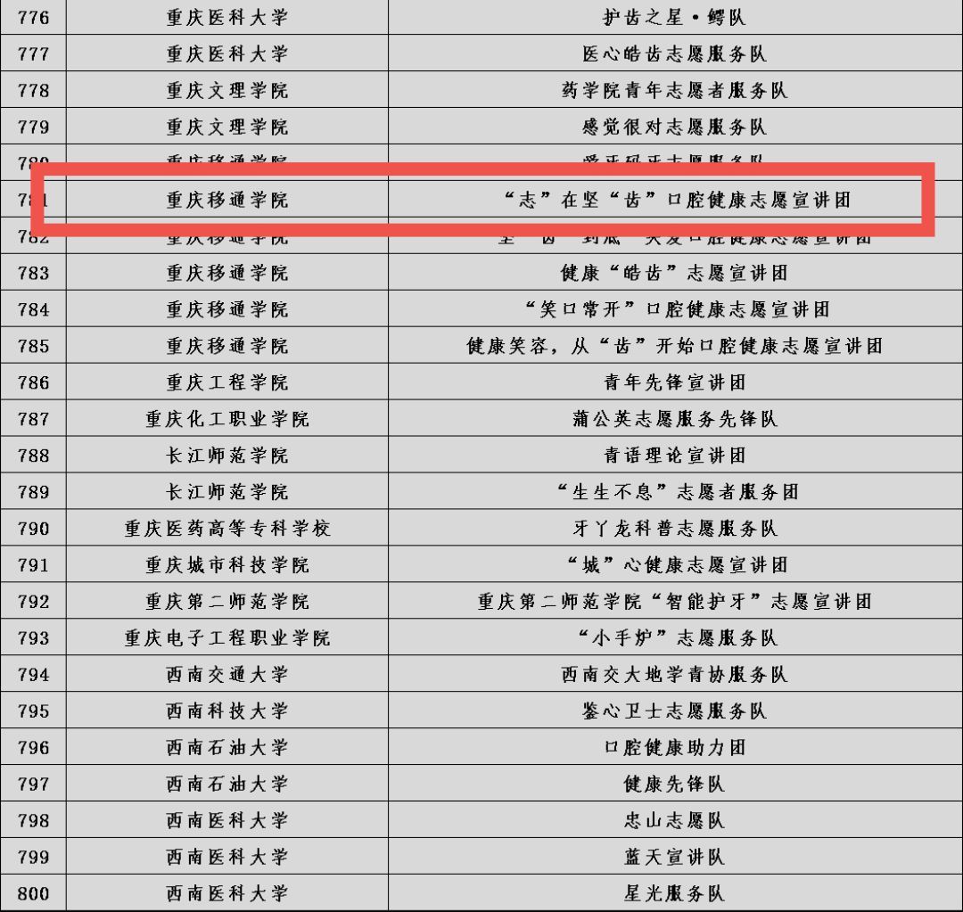 为深入学习宣传贯彻习近平新时代中国特色社会主义思想和党的二十大精神,落实《“健康中国2030”规划纲要》和《健康口腔行动方案(2019-2025年)》,引导青年学生掌握口腔健康知识,形成良好的口腔健康行为,团中央青年志愿者行动指导中心、国家卫生健康委医疗应急司共同开展“2023年全国大学生口腔健康志愿宣讲活动”,遴选了1000支大学生口腔健康志愿宣讲团,面向所在高校师生和周边社区居民、企事业单位员工开展宣讲。我校“坚‘齿’到底”关爱口腔健康志愿宣讲团成功入选1000支全国大学生口腔健康志愿宣讲队伍。