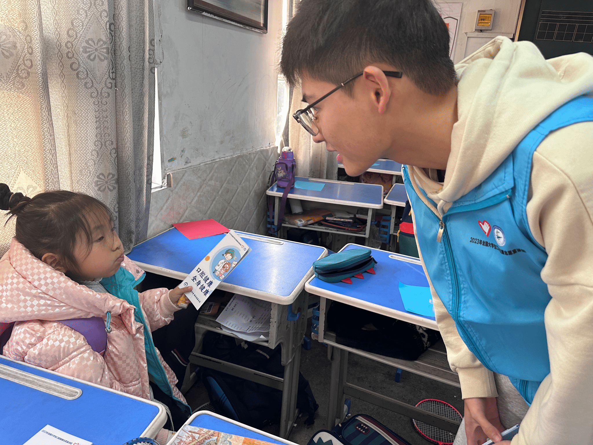 宣讲团联动世纪金马学府中央四点半课堂志愿服务专项支队、彩虹课堂支教团等专项支队联合开展口腔健康宣讲活动,引导小朋友在日常生活中口腔健康习惯。
