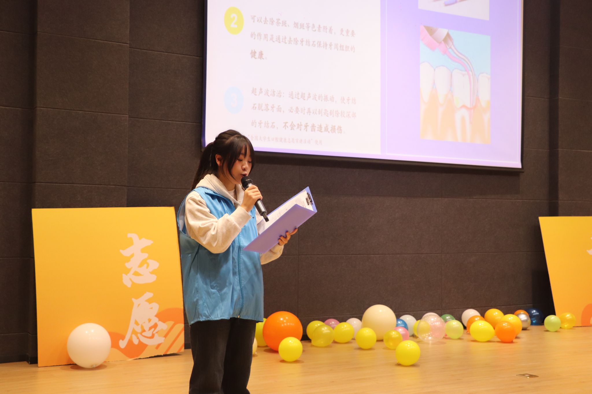 12场志愿活动宣讲充实、高效、有组织的在团队统筹安排中完成,成员们在一次次的志愿宣讲过程中感受到了活动的意义和价值,在实践过程中加深了专业知识的理解,达到了知行合一,学有所用的效果。“坚‘齿’到底”关爱口腔健康志愿宣讲团成员们也积极响应国家号召,投身健康中国建设,奉献青春之力,继续坚持向周边辐射开展口腔健康志愿宣讲、为人民群众开展口腔科普教育活动,为我国卫生健康事业的发展和健康中国的事业贡献出新青年的青春力量!