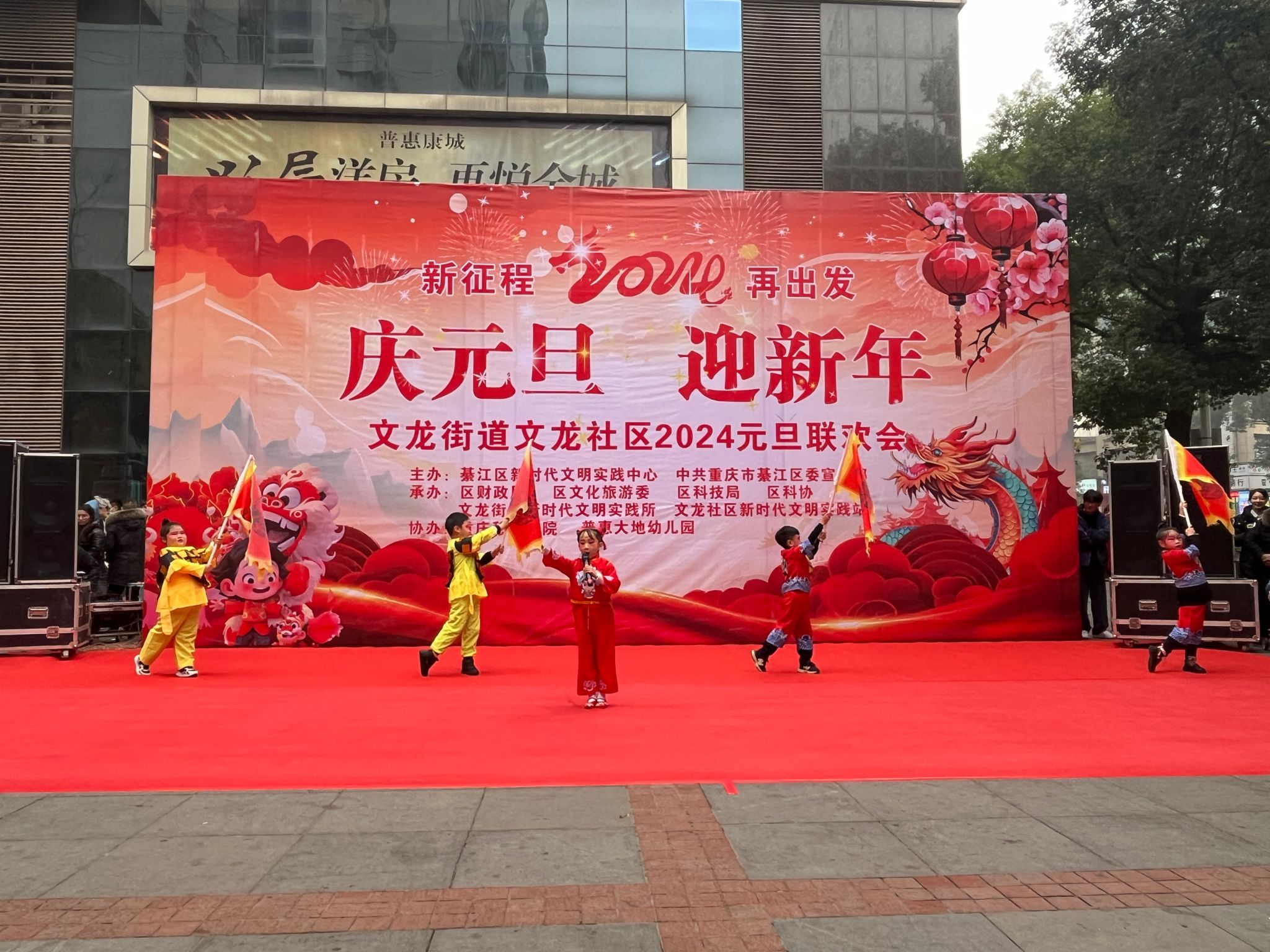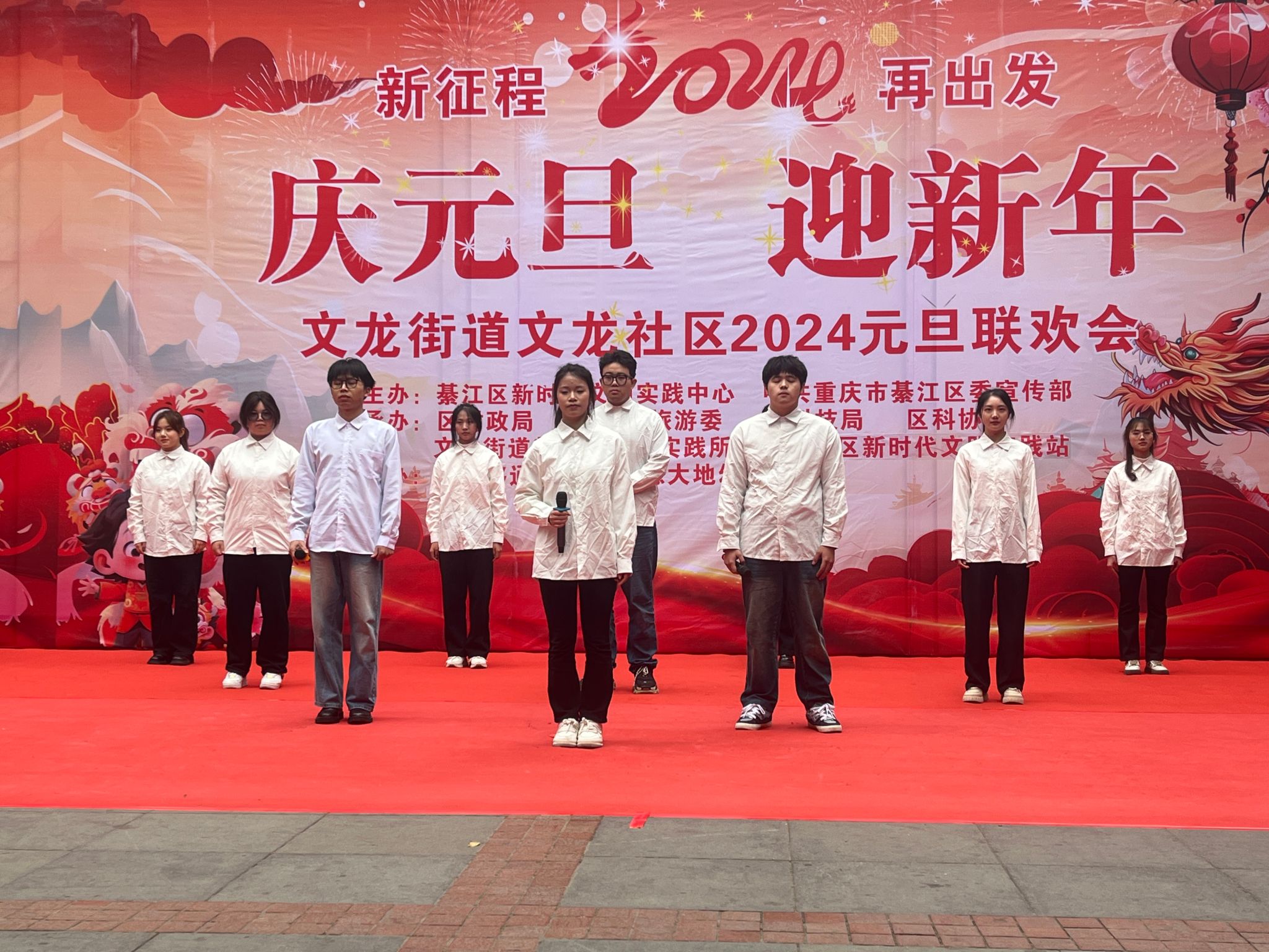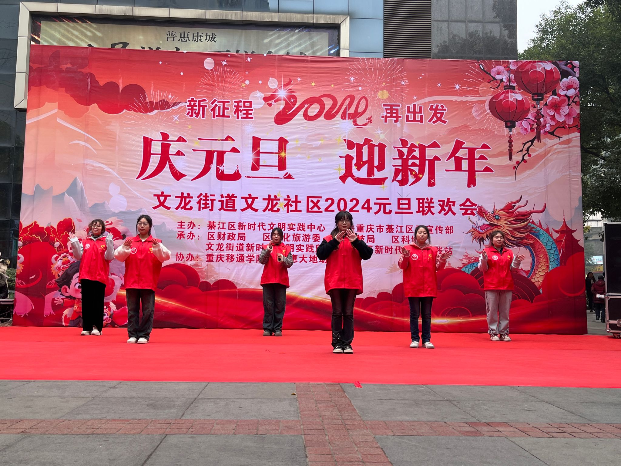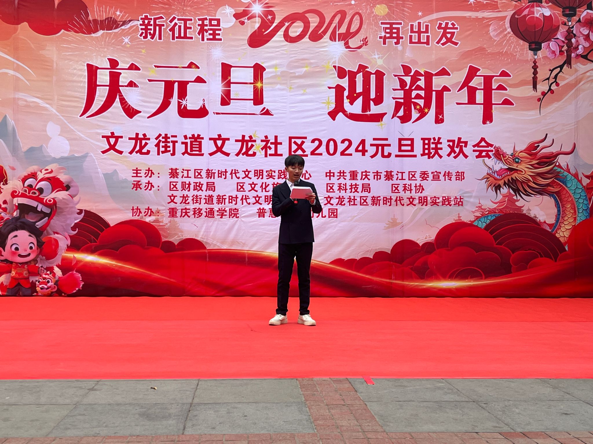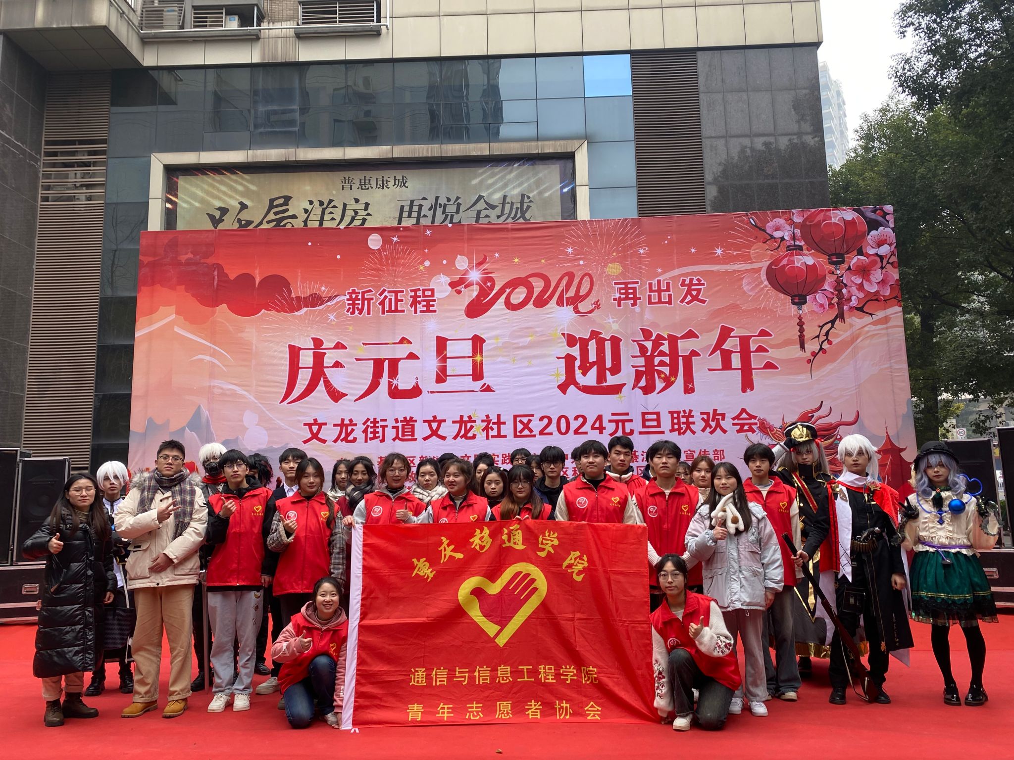 春风莫但开桃李,喜气洋洋正当时。新年将近,喜气迎面,每个人脸上多了一抹新年气息的阳光。青春的路上志愿相伴,关怀的路上服务有你,喜迎元旦,为让社区居民感受到青年大学生的激情与活力,体验“年味儿”十足的2024。为此通信与信息工程学院青年志愿者协会联合艺术部、巴别塔动漫社团以及文龙社区艺术团于2023年12月28日在文龙社区共同举办本次“庆元旦,迎新年”的元旦庆会。本次活动参与人数33余人,受益人数达到300余人。