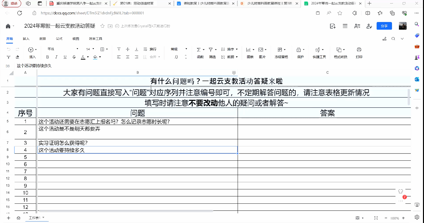 云端支教,步履不停。为全面保障本次“一起云支教”专项活动正常有序开展,让志愿者们对“一起云支教”有更深入的了解,2024年1月27日,大数据学院青年志愿者协会筹备动员大会。会上首先介绍了本季活动具体内容,并向志愿者们详细说明参与活动“应该做什么”、“怎么做”,以保证后期活动的顺利召开。在一系列活动内容介绍完毕后,执行专员李俊男针对志愿者的疑问一一进行解答,为此次后续活动的顺利开展打下了坚实的基础。