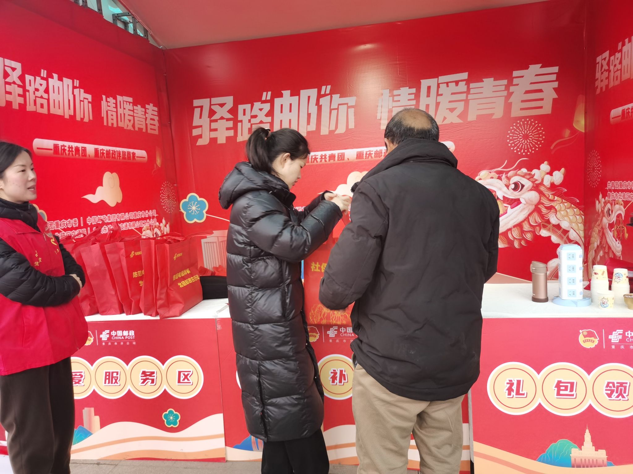 除了赠送新春大礼包外,邮爱驿站还为旅客们准备了热水和休息站。在寒冷的冬日里,一杯热腾腾的茶水不仅能驱散寒意,更能温暖人心。旅客们纷纷表示,能在旅途中遇到这样的暖心服务,让他们倍感温馨和感动。