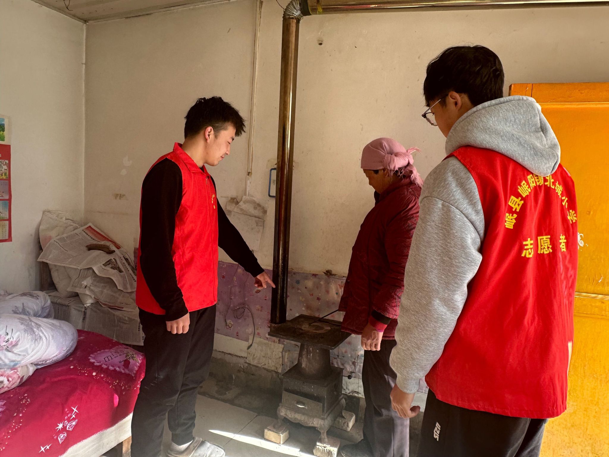 在走访的过程中,李鹏宇同学还遇到了一些特殊情况:在一户老人家中,他发现火炉旁堆放了大量报纸和木柴,存在极大的安全隐患。李鹏宇立即帮助老人清理了这些易燃物,并耐心地向老人解释了火灾的危害和预防措施。
