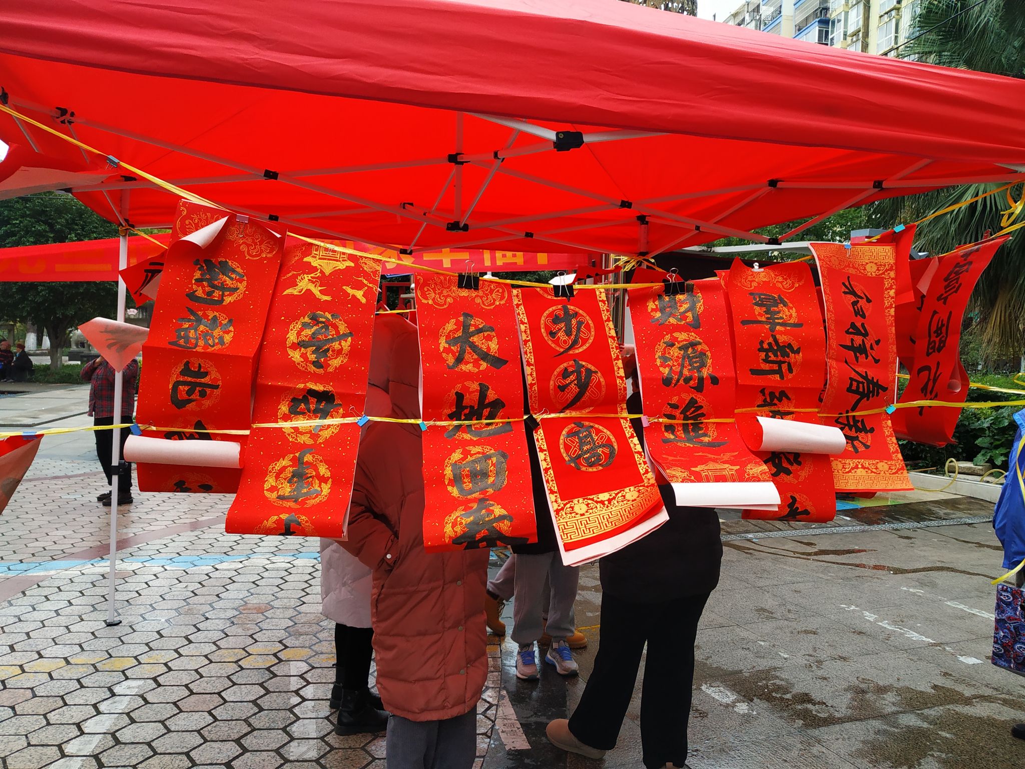 一笔一墨彰显书法魅力,一纸一砚谱写美好愿景,在澳华花园的活动现场,书法爱好者们挥毫泼墨,围观的居民一边欣赏书法创作,一边品评春联书画寓意,挑选着自己心仪的春联,志愿者和社区工作者们则不惧严寒、尽力尽力为社区居民答疑解惑。
