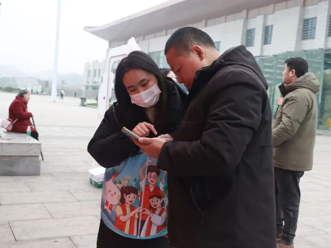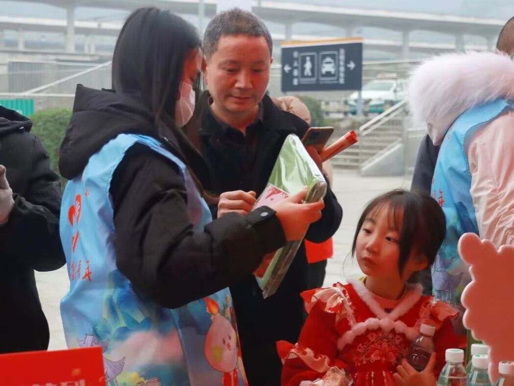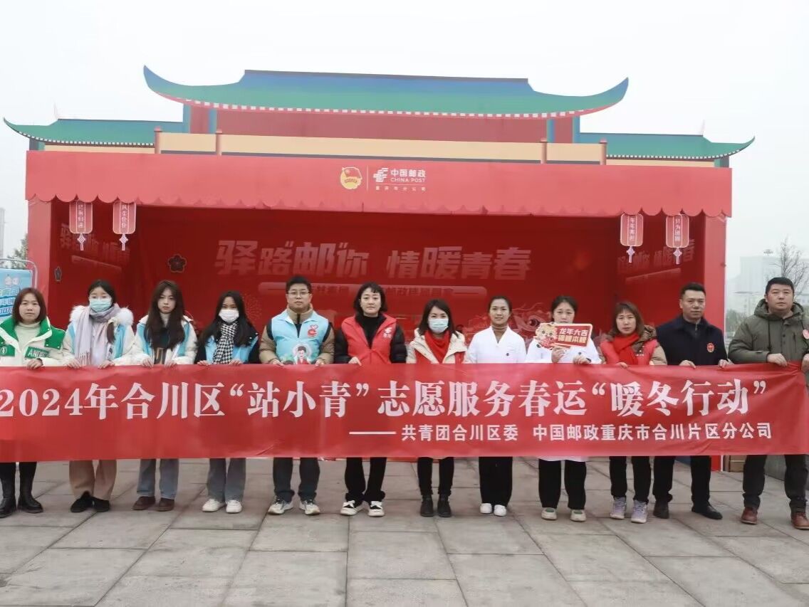 2024年2月1日上午9点,各单位工作人员与志愿者齐聚合川火车站,在一切就绪后,“邮爱驿站”暖青行动正式开始。