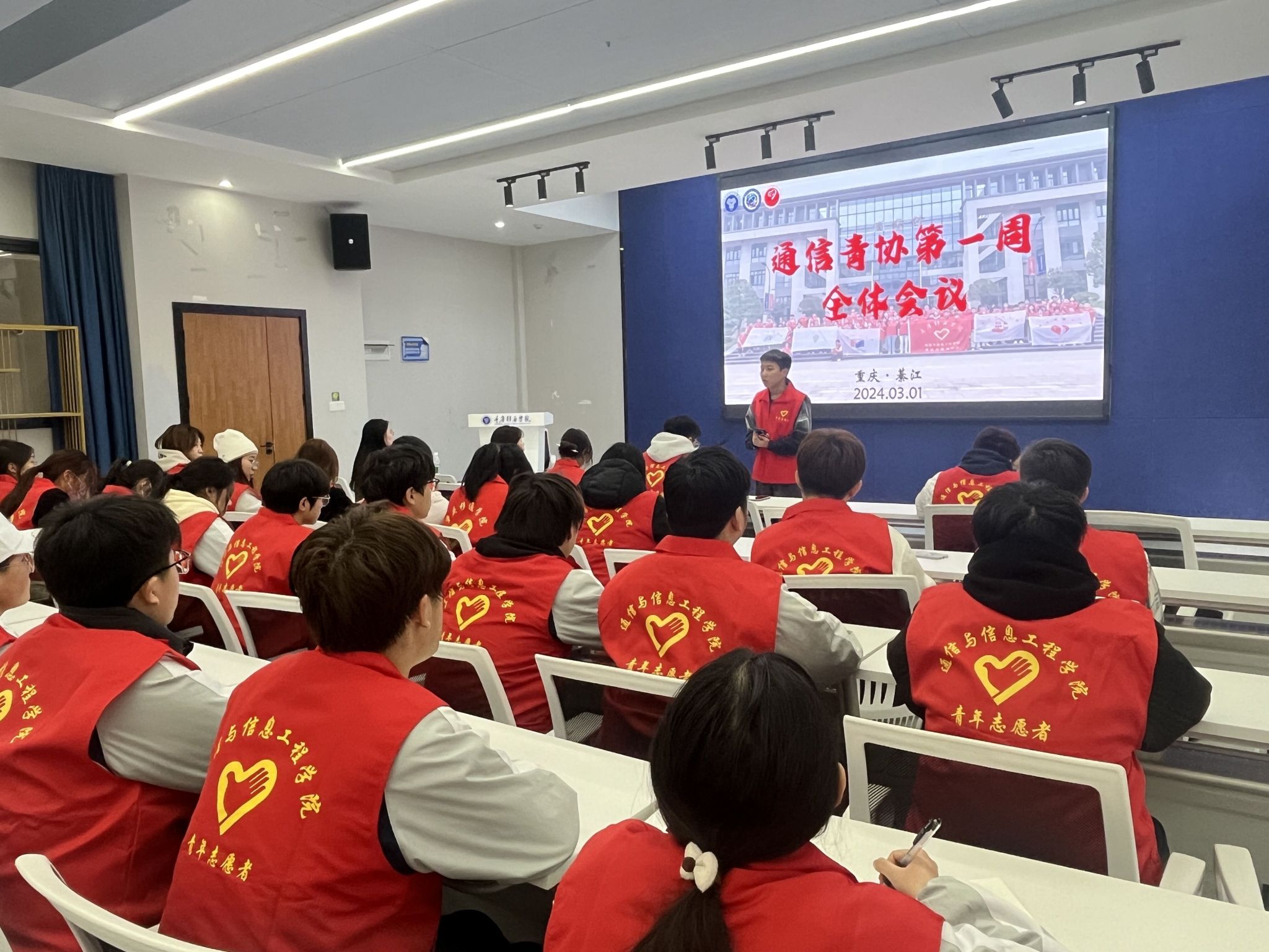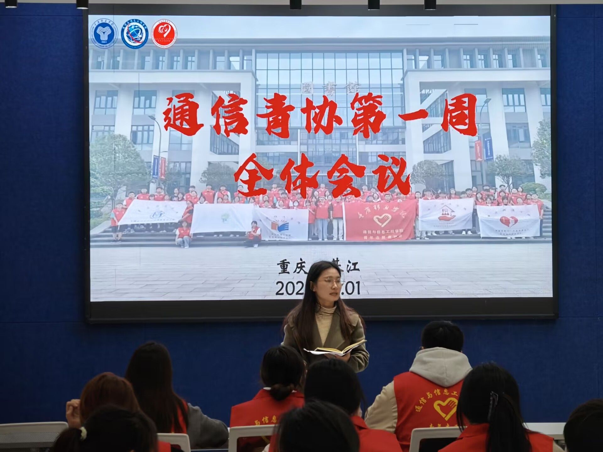 在过去的2023年里通信青协始终秉承“奉献、友爱、互助、进步”的志愿服务精神,在志愿服务的道路上砥砺前行。新学期新气象,为更好的做好后期志愿服务相关工作,提高志愿服务质量,鼓励协会成员“敢想敢干、有胆识、有力量”。为此2024年3月1日中午,通信与信息工程学院青年志愿者协会于綦河书院观涛多功能活动室开展全体会议,参加此次会议的主要人员有青协各个部门干部及干事,各个支队支队长,共计参与人数50余人。