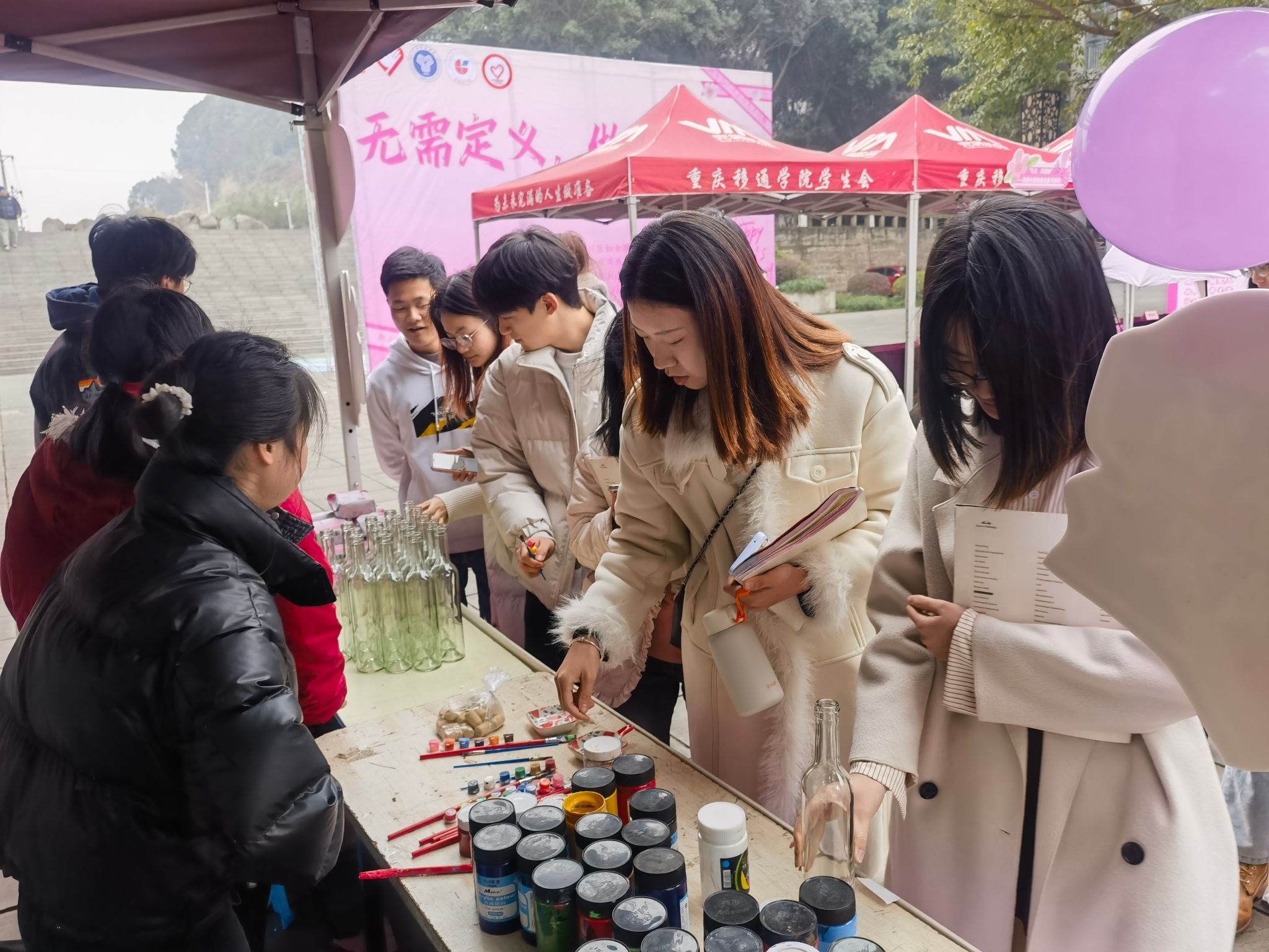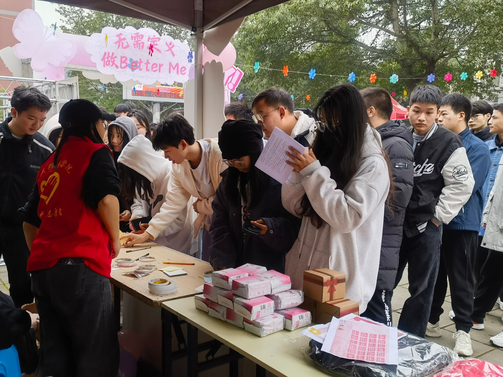 雷锋月映,妇女花绽。淬炼商学院青年志愿者协会举办了一场“人生是旷野,不是轨道”的趣味集市活动。通过“花束传心,信笺寄意”创意签到、“Light for me”酒瓶小夜灯DIY、“巾”她之手,予她本色——撕标签卫生巾发放、公益视频录制活动“做不被定义的自己”等多个子活动,丰富了志愿服务活动的内容与形式,更让全校师生在参与中感受到自己的价值和力量。