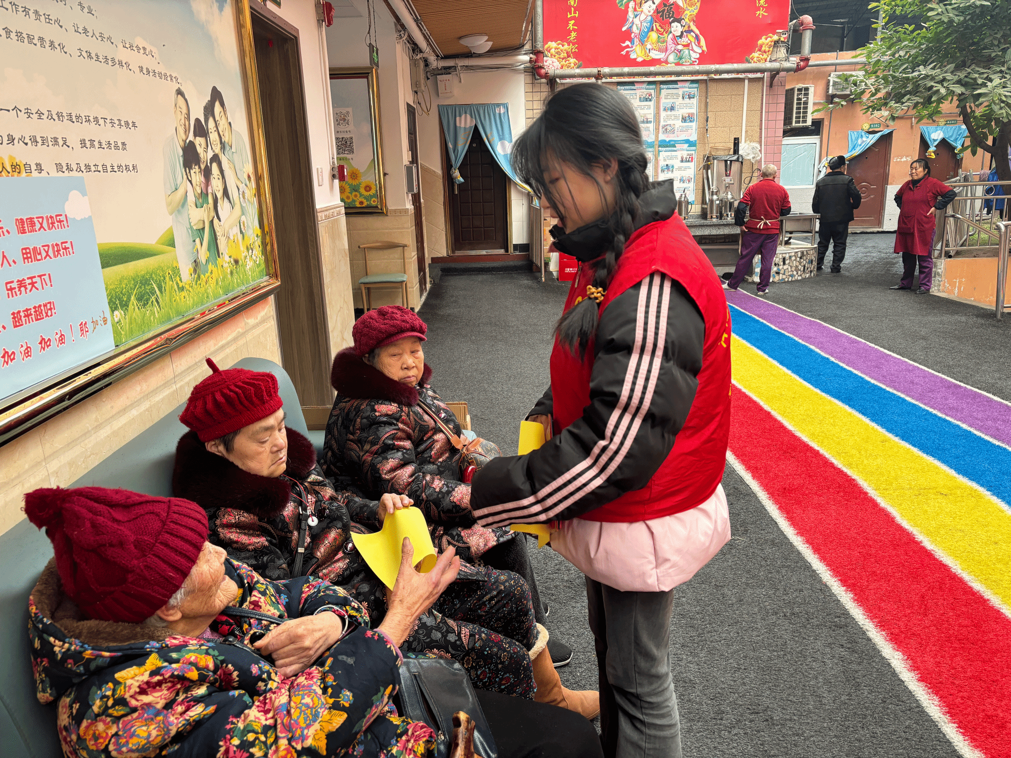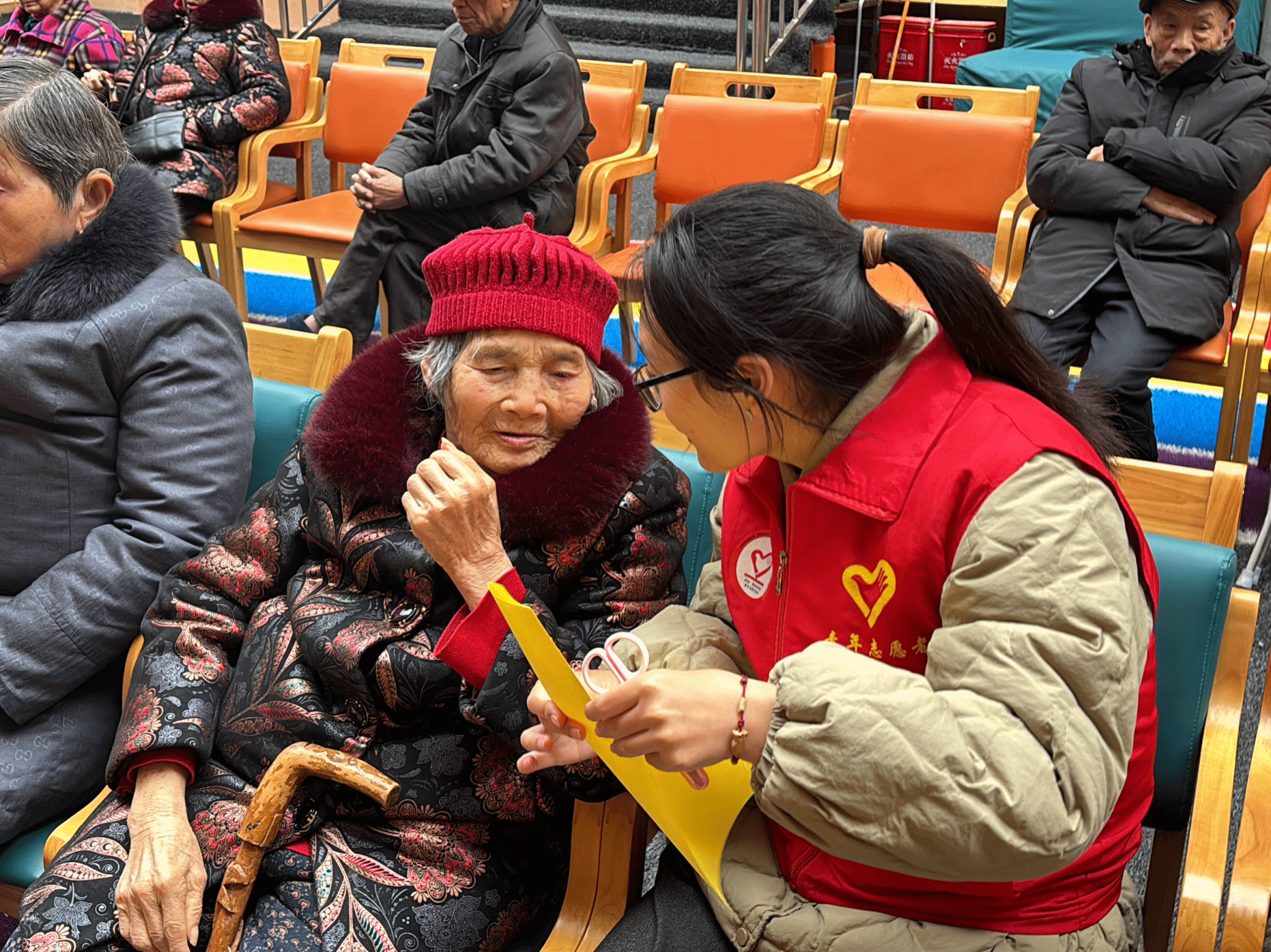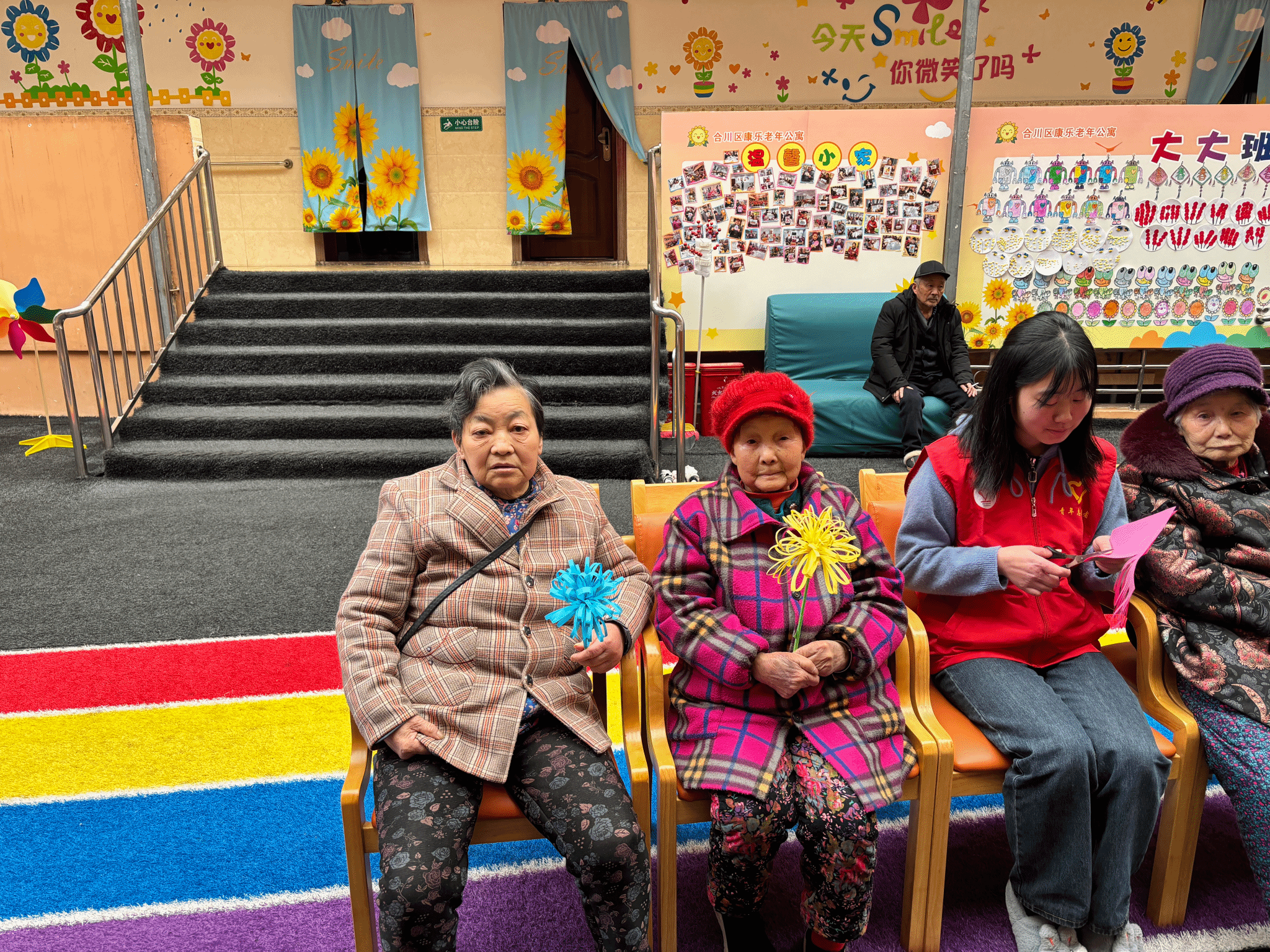 “富贵安康”的寓意和花语源于菊花,因其具有延年益寿的功效,被誉为“十二客中的寿客”,菊花常被用作吉祥物等物品上的花纹,寓意着富贵安康。在本次志愿服务专项支队活动中,志愿者和老人们共同完成创意折纸DIY,志愿者们通过教授简单的手工制作技巧,让爷爷奶奶们亲手制作属于自己的独特小花,体会到了别样的欢乐,让老人们下午的时光更加幸福、快乐,而作品的完成也增强了老人们的自信心。