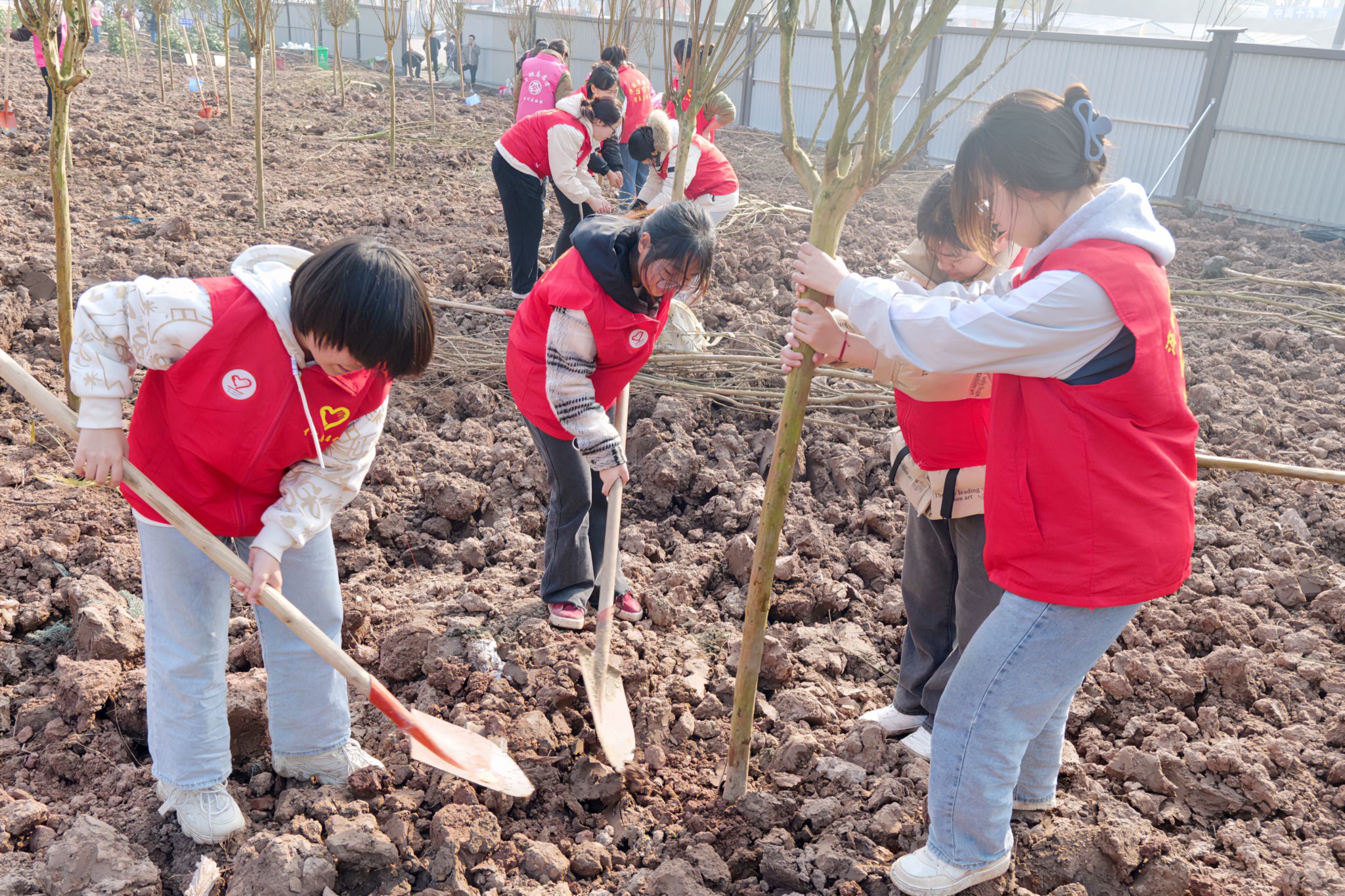 春回大地万物醒,植树添绿正当时。活动期间,老师们提醒大家在植树的同时也注意自己的安全,到各处帮助志愿者们并与之交流,呼吁大家用行动守护生态,共享绿色美好未来,新时代的青年就像刚刚发芽的新绿,需要一代一代的传承,小树苗也会成长为参天大树,终有一天也会会培育新的树苗成为新新树苗的避风港,遮风挡雨。
