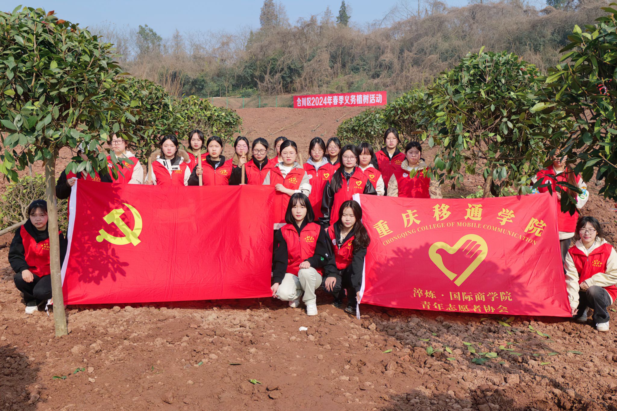 种下一棵树,收获万点绿。本次植树活动,在师生共同努力下,土地上挺立着一棵又一棵的树苗,就如同悬挂的横幅说的那样“万名机关党员植绿护绿,助力两岸青山·千里林带建设”自此大自然的画作定格在那瞬间。一棵树,一抹绿,一份责任,在这天大家团结一心,撒下一点绿色,播种一片绿意。用行动去实践,用最好的精神风貌展示了青年一辈的作为和担当。此次活动不仅为辖区新添了绿色,也让志愿者们感受到了植树的乐趣,更是用行动诠释了“绿水青山就是金山银山。”成长也许要经历漫长的等待,也许要承受时间的重量,但请相信在未来淬炼商学院青年志愿者协会会带领更多志愿者绿化祖国青山,装点魅力合川,共同建设绿色环保的家园。