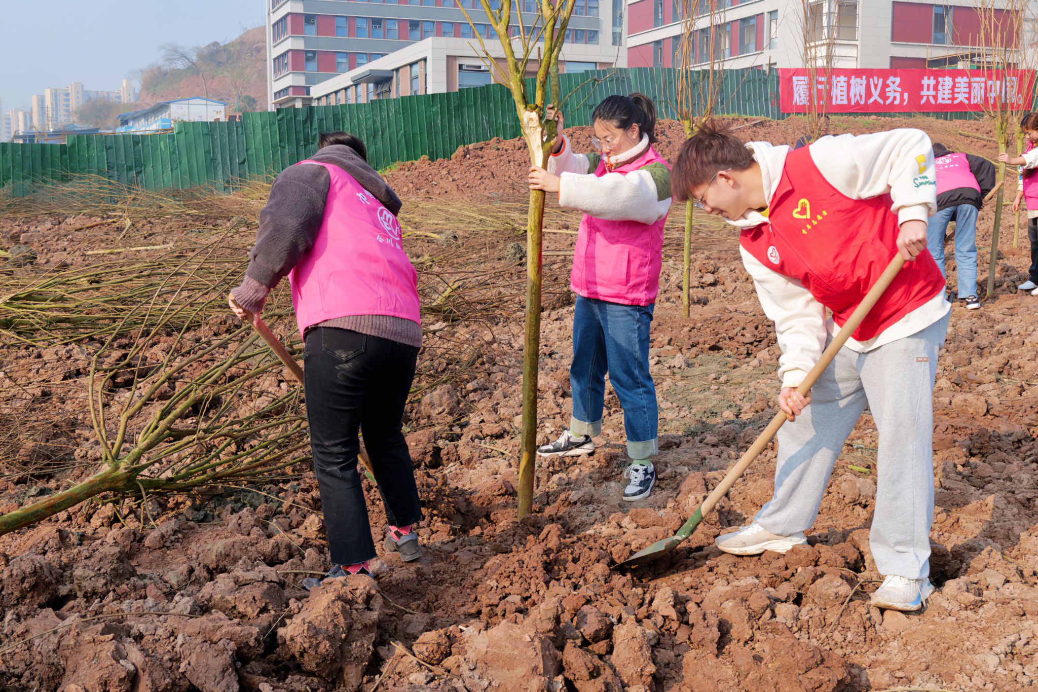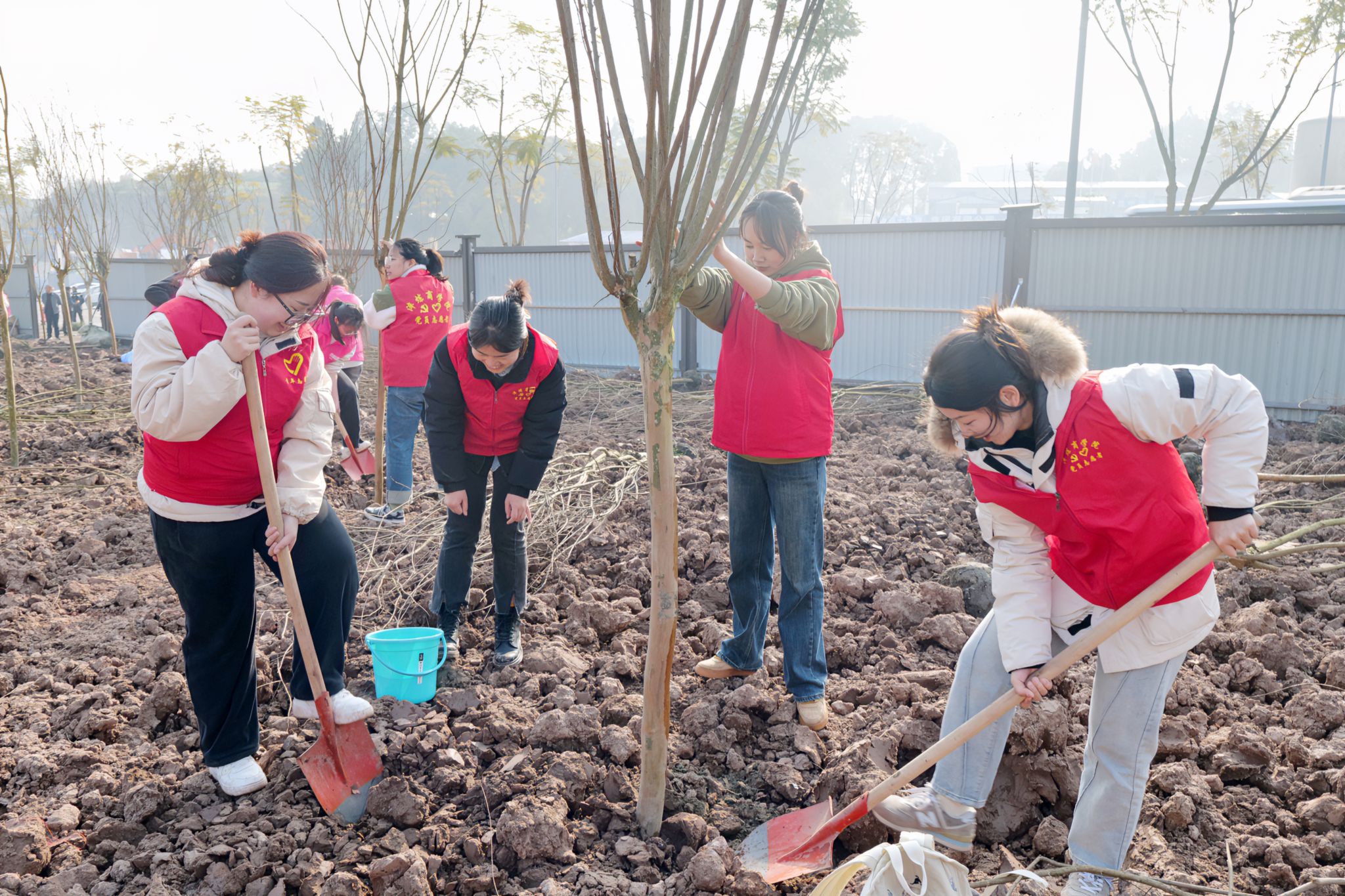 亿万棵树连一起,染绿祖国的幅员。为落实绿水青山就是金山银山,改善生态环境就是发展生产力的发展理念,提高各党员干部绿色环保的意识,一起孕育新的生命,共建美丽合川。2024年3月11日,淬炼商学院青年志愿者协会联合重庆市合川区妇女联合会巾帼志愿者、淬炼商学院学生党支部一同前往重庆市合川区合阳城街道黄连垭开展“植”此春林,巾帼先行——巾帼植树节活动。