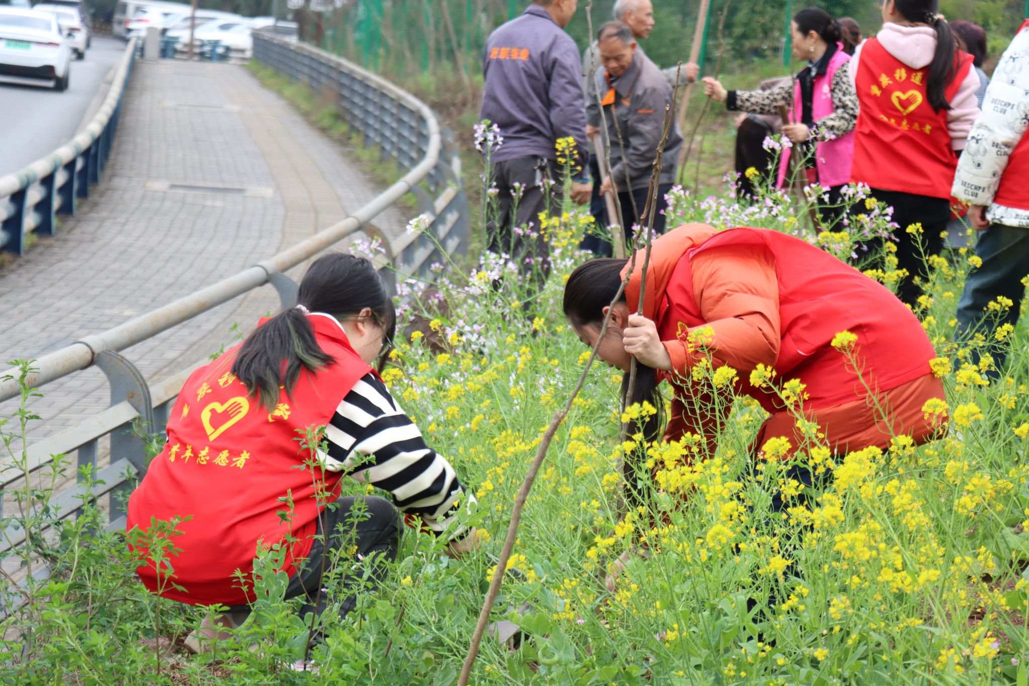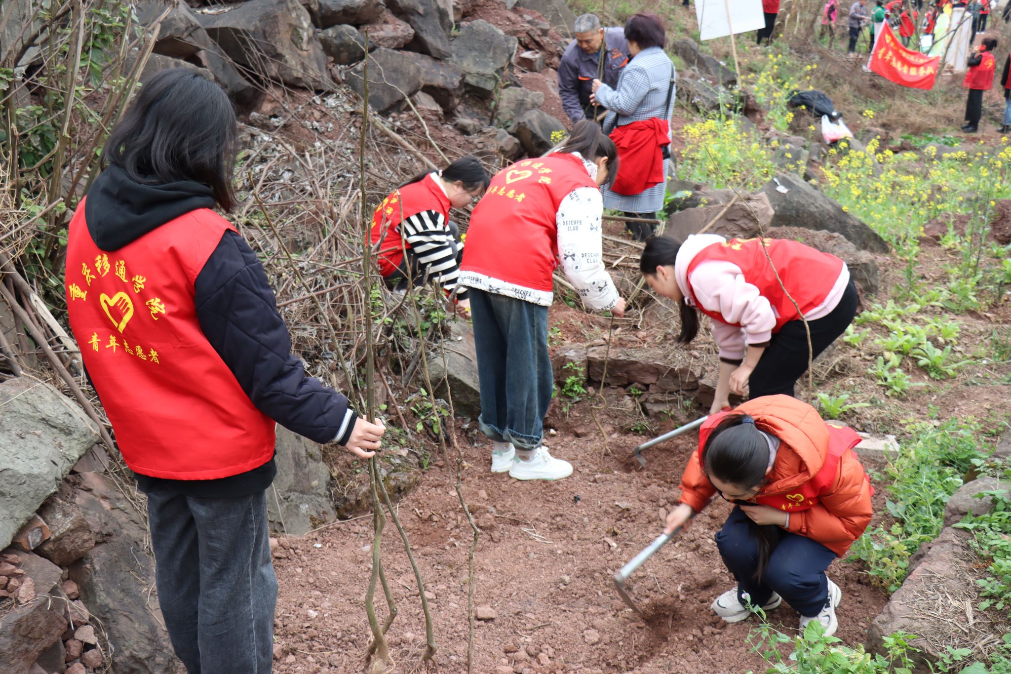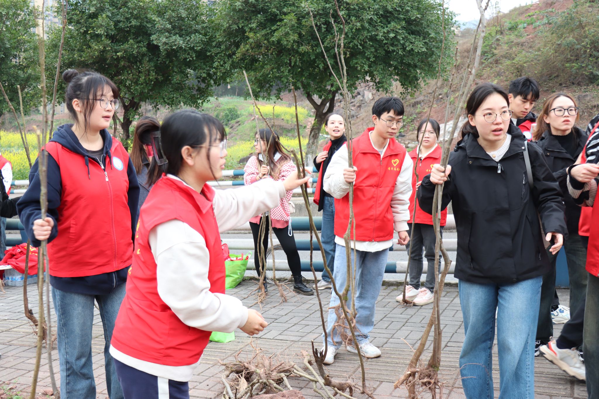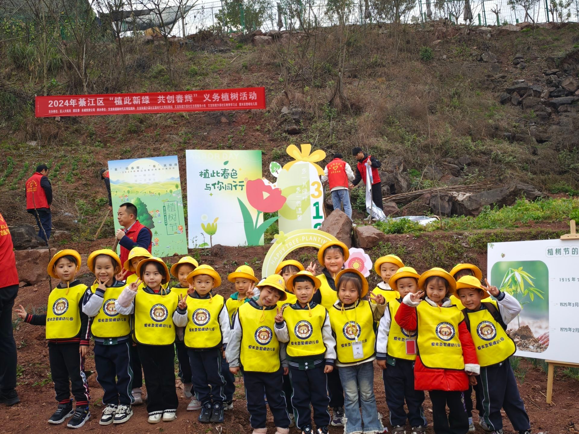 春意盎然,万木葱茏,值得三春树,招来百鸟鸣。随着我国第46个植树节的来临,为增强学生的环保意识,养成环保习惯,并深刻体会到生态环境的重要性,3月12日早上,“童”植春晖·“綦”筑绿旖——2024年綦江区青少年劳动实践活动顺利举行。作为活动承办单位之一,我校团委青年志愿者联合会、数字经济与信息管理学院、綦江校区机关第二党支部、数字经济与信息管理学院学生党支部带领志愿者20余名一同参与此次活动。本次活动由重庆市綦江区人大机关、綦江区团委、永城投资公司主办,参与人数共计约120人。