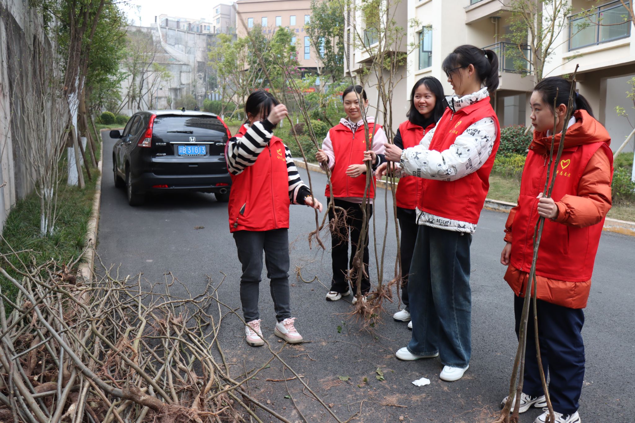 当最后一棵树苗安置好,整个活动也到了收尾阶段。志愿者们与小朋友们一起站在新栽的小树旁,合影留念。一排排新栽的小树在微风中摇曳生姿,为大地增添了一抹新绿。小树苗深深扎根于土壤,环保知识也深深扎根于在场所有人的心灵,本次活动让参与者亲身体验到了劳动的乐趣和成就感,更让其深刻感受到了自己行为对环境的积极影响。