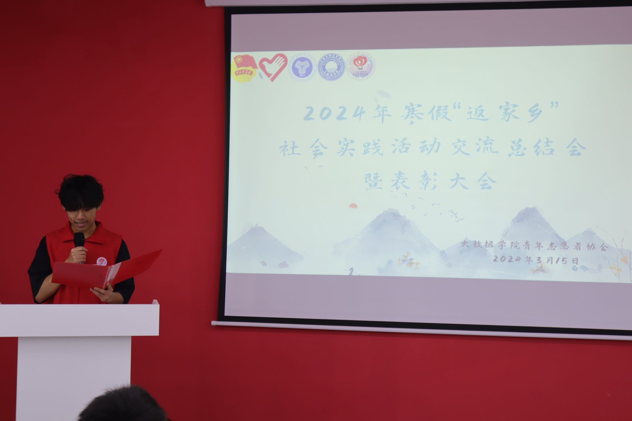 为深入学习贯彻习近平新时代中国特色社会主义思想,贯彻落实党的二十大精神、习近平总书记关于青年工作的重要思想,搭建大数据学子与家乡常态化联系的实践桥梁。2024年3月15日12:40,大数据学院青年志愿者协会在玉棠书院Talk King演讲中心召开2024年寒假“返家乡”社会实践活动总结暨表彰大会。召开本次总结大会亦在对此次返家乡活动的回顾,详细梳理和展示活动期间所取得的各项成果,总结经验教训,表彰优秀支教者并加强团队合作与交流。