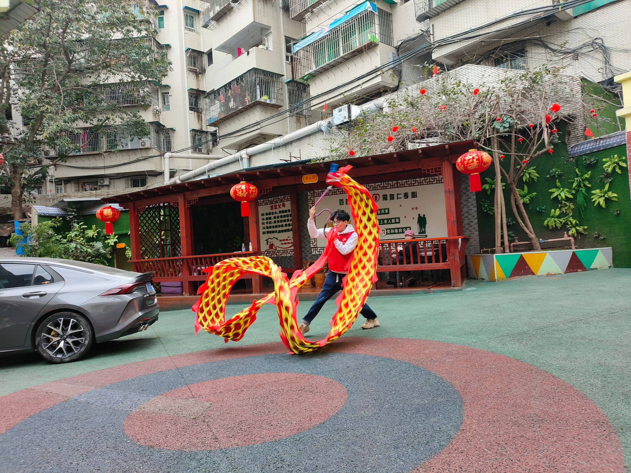 此外,文艺演出环节将现场气氛推至高潮。志愿者们准备一场精彩纷呈的演出,歌舞相伴,用美妙的旋律和舞姿向老人们表达敬意与祝福。舞龙表演尤为亮眼,赢得阵阵掌声。老人们笑逐颜开,现场洋溢着温馨与和谐。这场演出不仅展现了志愿者的才艺,更传递了尊老爱老的美好情感。