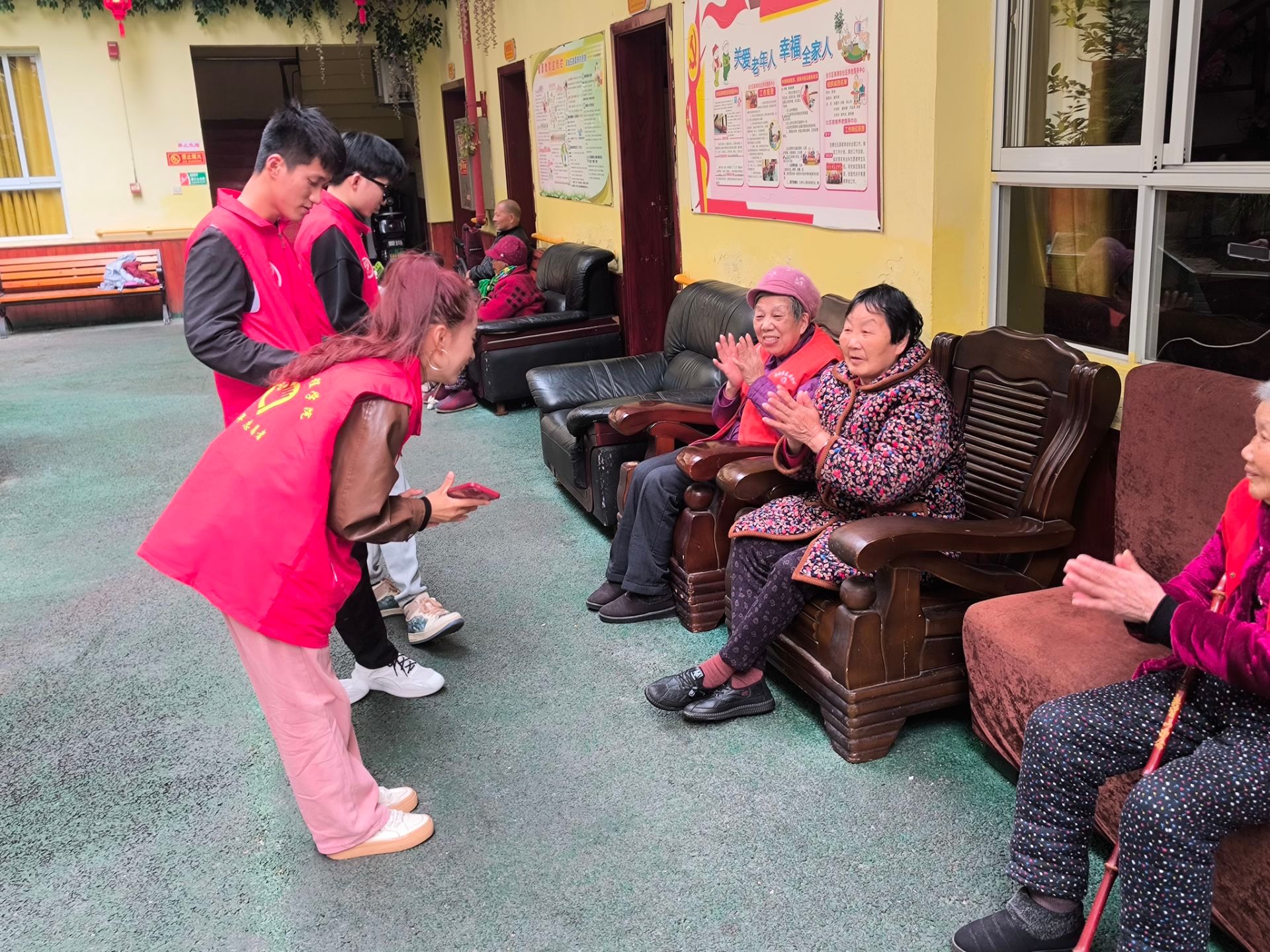 随后在敬老服务实践环节,志愿者们走到老人们旁边,为老人们按摩、聊天,倾听他们的心声,用实际行动传递关爱与温暖。老人们的脸上洋溢着幸福的笑容,对志愿者们的到来表示由衷的感谢。