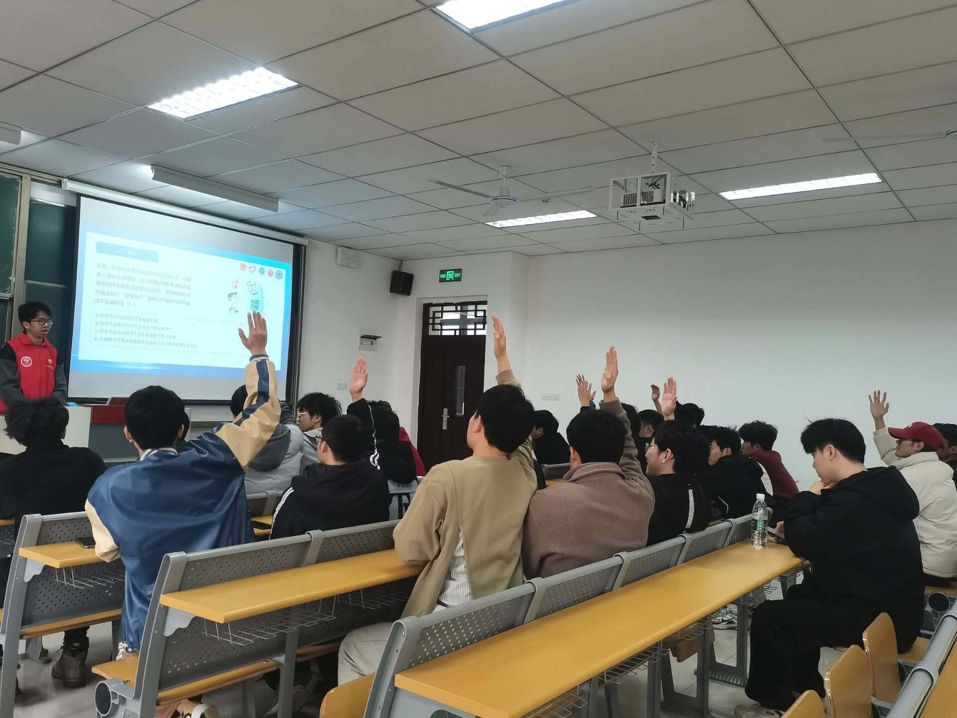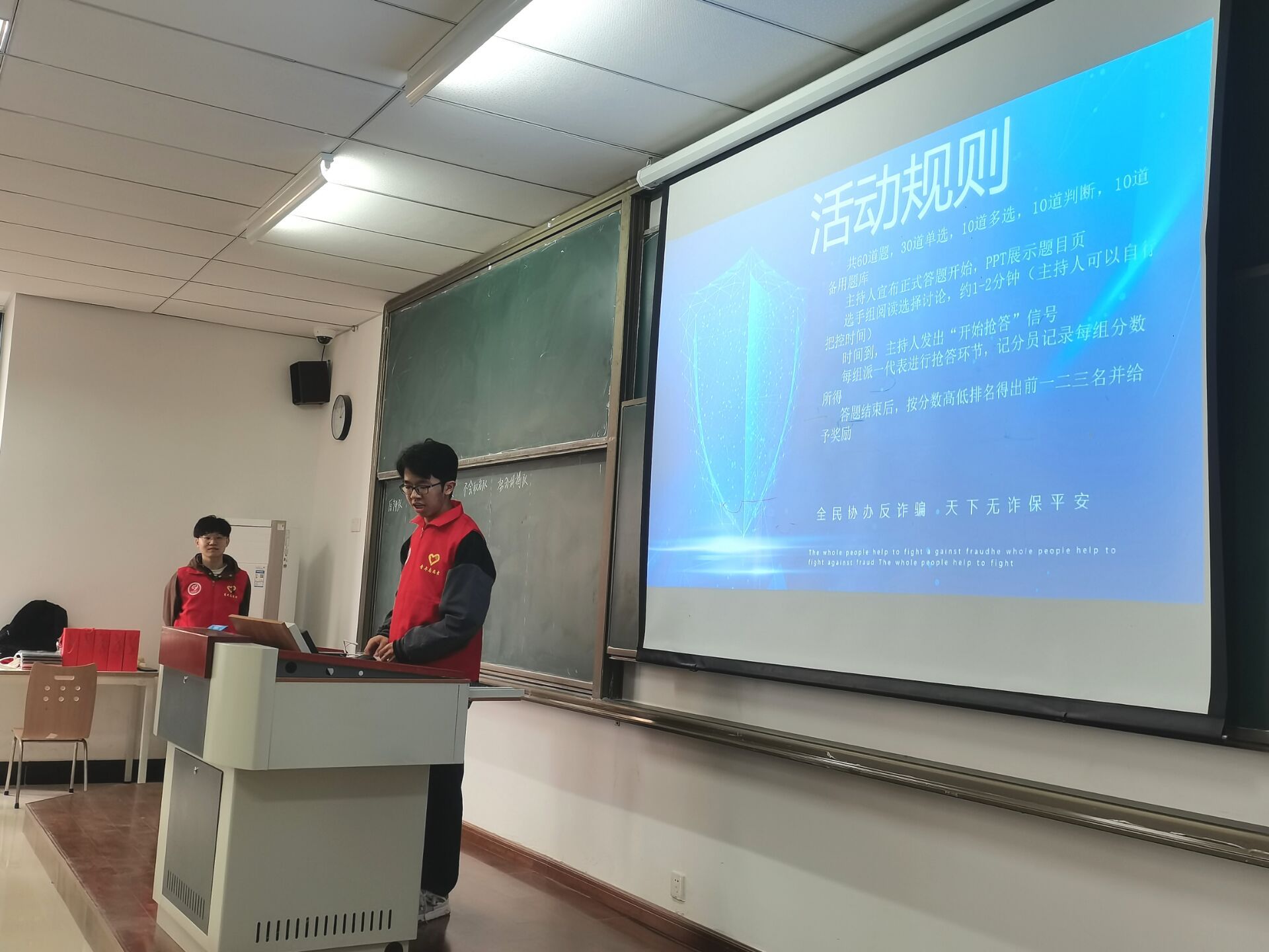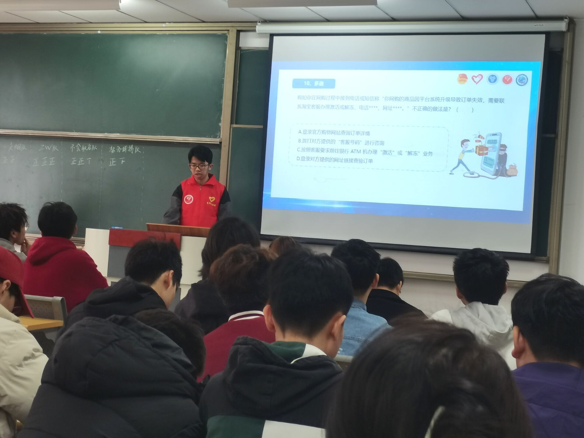 活动过程中,同学们全身心关注在每一道题目上面,“如何避免网络诈骗”“如何选择正确的兼职不被骗”“如何正确应对不法分子的诈骗行为”,仔细分析每一个题目的字眼,五个小组,争分夺秒,在仅有的六十道题目内为自己小组争夺更多的分数,整个活动现场同学们在热烈的氛围中不断发现新的知识,发现自己在防诈骗意识的欠缺,因此也给自己小组丢掉了遗憾的分数。
