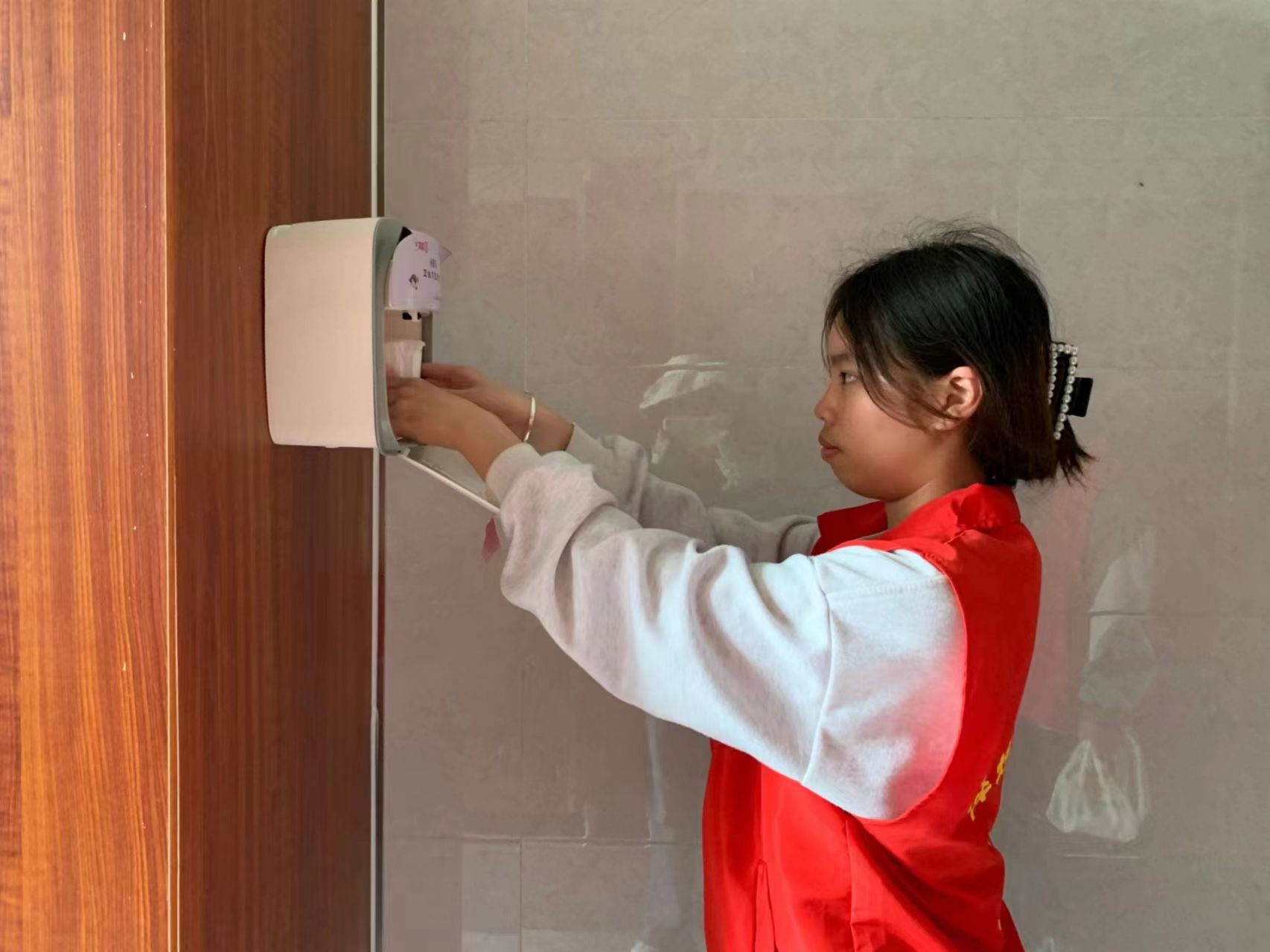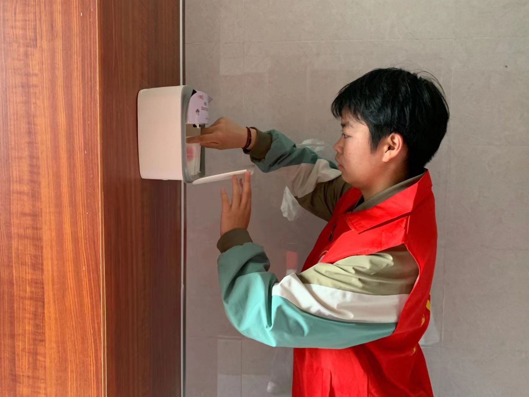 一片小小的卫生巾却有着大大的力量。活动一开始,志愿者们在指定的地点集合,由负责人讲解完活动注意事项后,志愿者们分为多个小组分别前往各教学楼女厕所,对每一个卫生巾互助盒进行检查、清洁和卫生巾补充。活动过程中,志愿者们积极配合,认真仔细,努力用热心传递温暖。通过这次活动,志愿者们也从中感受到了帮助他人的快乐和意义。