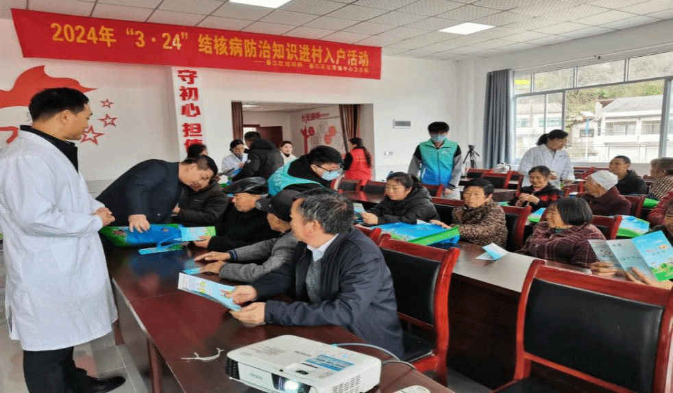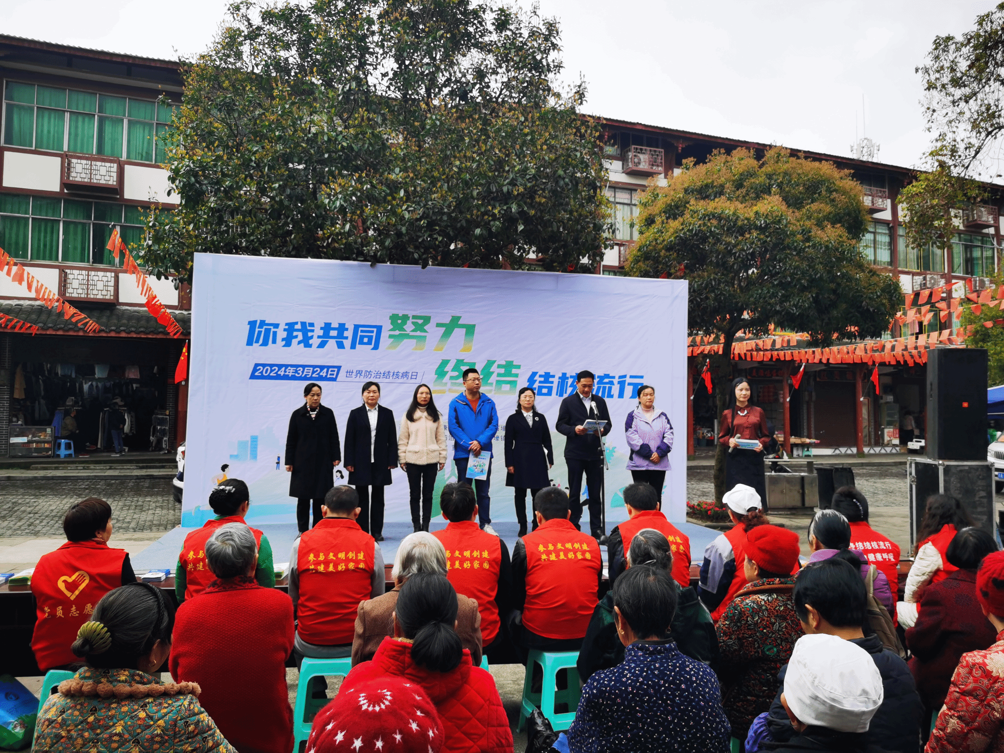 为做好今年“世界防治结核病日”宣传活动,践行“人民至上, 生命至上”的理念,终结结核病流行,在綦江区卫生健康委、石壕镇人民政府部署下,区结防所联合区人民医院、石壕镇中心卫生院、共青团重庆移通学院委员会于2024年3月24日在石壕镇开展了“你我共同努力 终结结核流行” 为主题的世界防治结核病日宣传活动。綦江区卫生健康委、石壕镇人民政府、区结核病防治所、区人民医院、石壕镇中心卫生领导、结防医生及重庆移通学院“传声筒”防痨志愿服务专项支队的五名志愿者参加了此次活动。