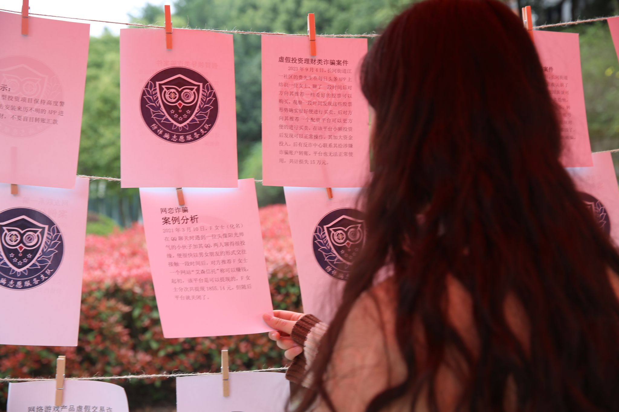 “反诈情报局”相较于传统的线下宣讲,更能够给同学们留下深刻的印象,语言的力量不容小觑,同学们利用谐音,暗喻等方式,写出来众多精彩的反诈标语:“一夜暴富诱(有)陷阱”,“骗子不高明,专骗财迷人”等,用文字传递反诈的危害性、警示同学们时刻保持清醒,勿贪便宜。