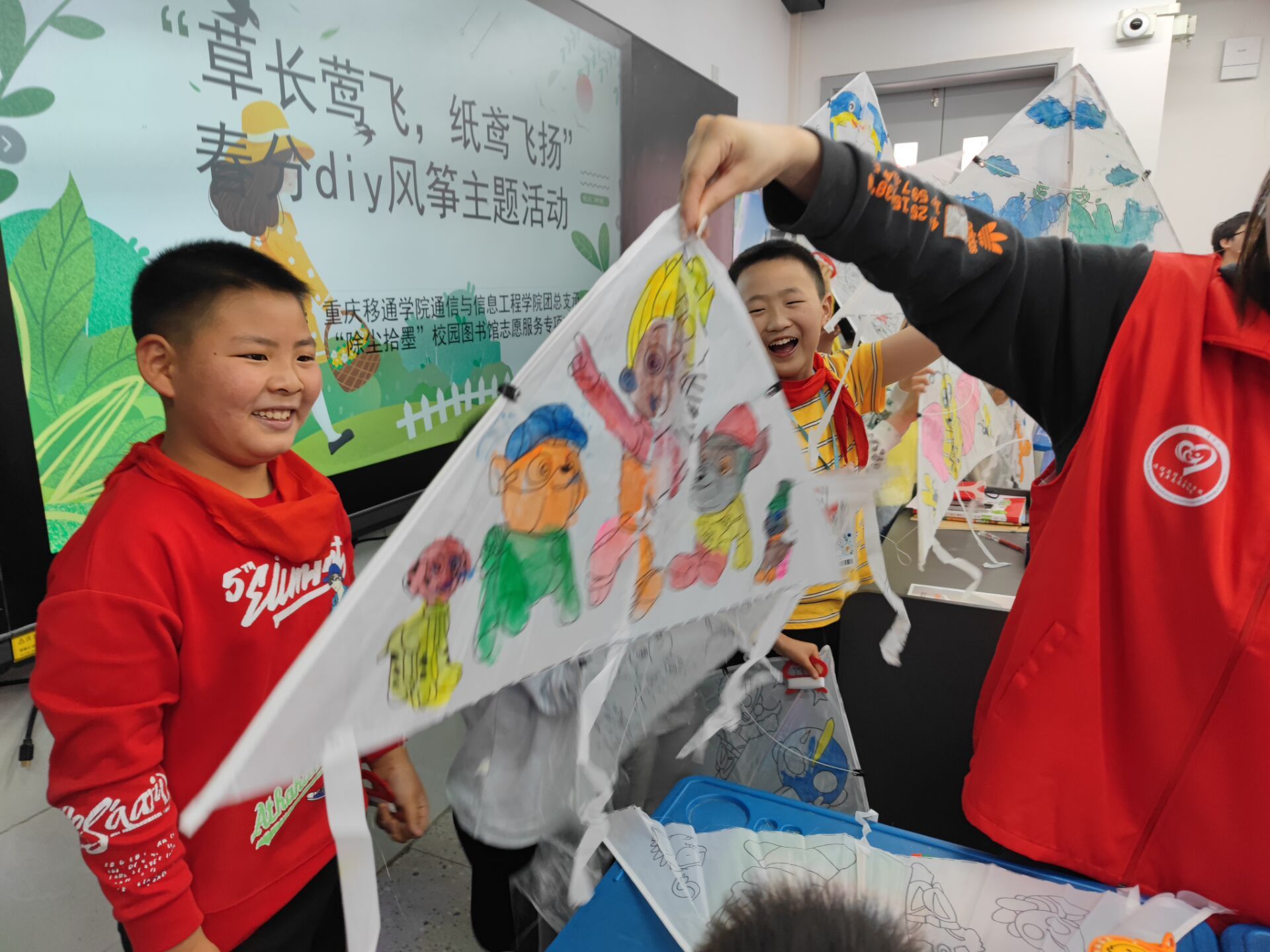 中华文化传承千年,源远流长,无数文化瑰宝在历史长河中熠熠生辉——风筝作为一种古老的民间工艺品,承载了丰富的文化意义,其演变过程也反映了中国科学技术的进步和发展。为弘扬优秀传统文化技艺,3月25日,重庆移通学院通信与信息工程学院“除尘拾墨”校园图书馆志愿服务专项支队联合綦江区陵园小学举行“草长莺飞,纸鸢飞扬——diy风筝”主题活动。此次活动参与人数达40余人,受益人数达80余人。